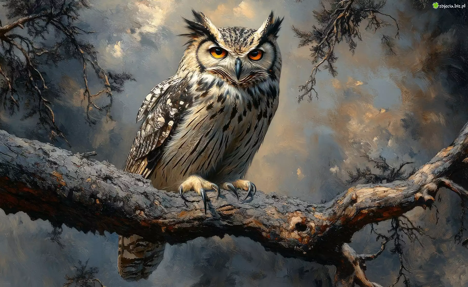 Zdjęcie Sowa, Puchacz, Gałąź, Grafika
