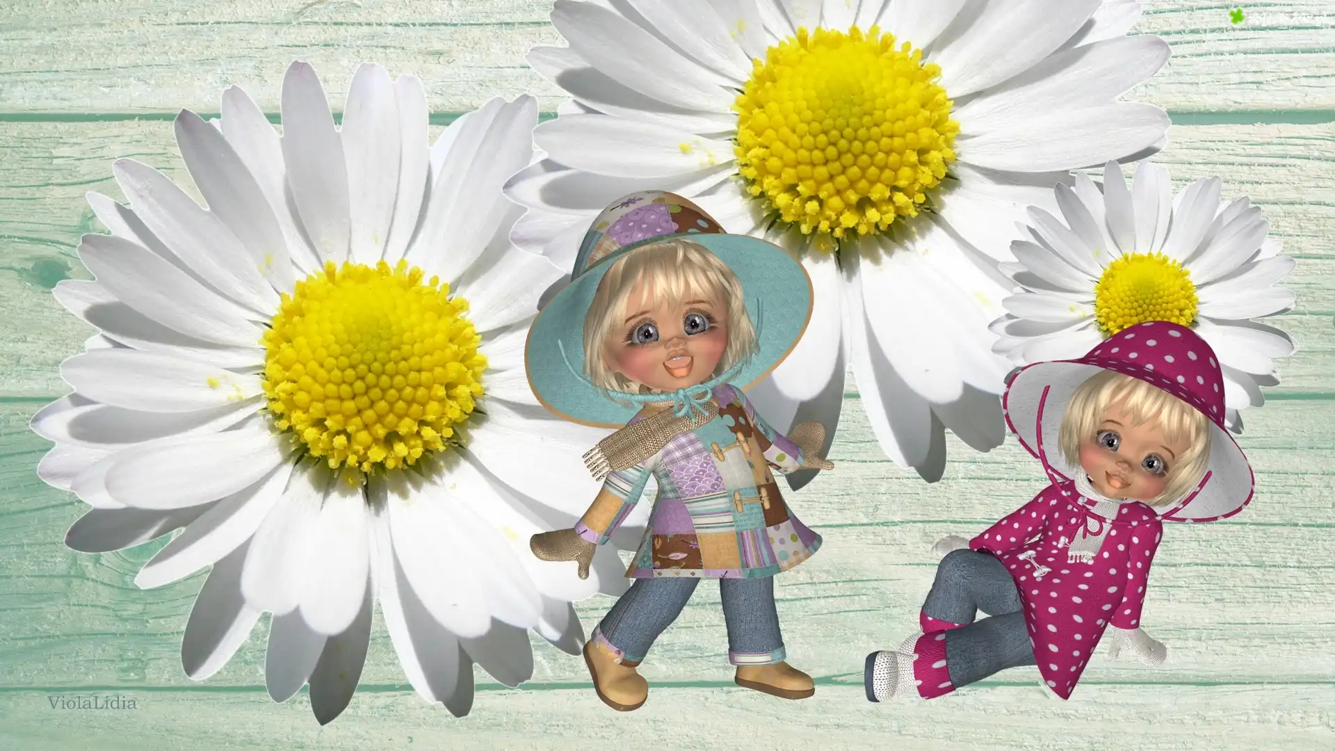 Zdjęcie Grafika, Kwiaty, Stokrotki, Laleczki