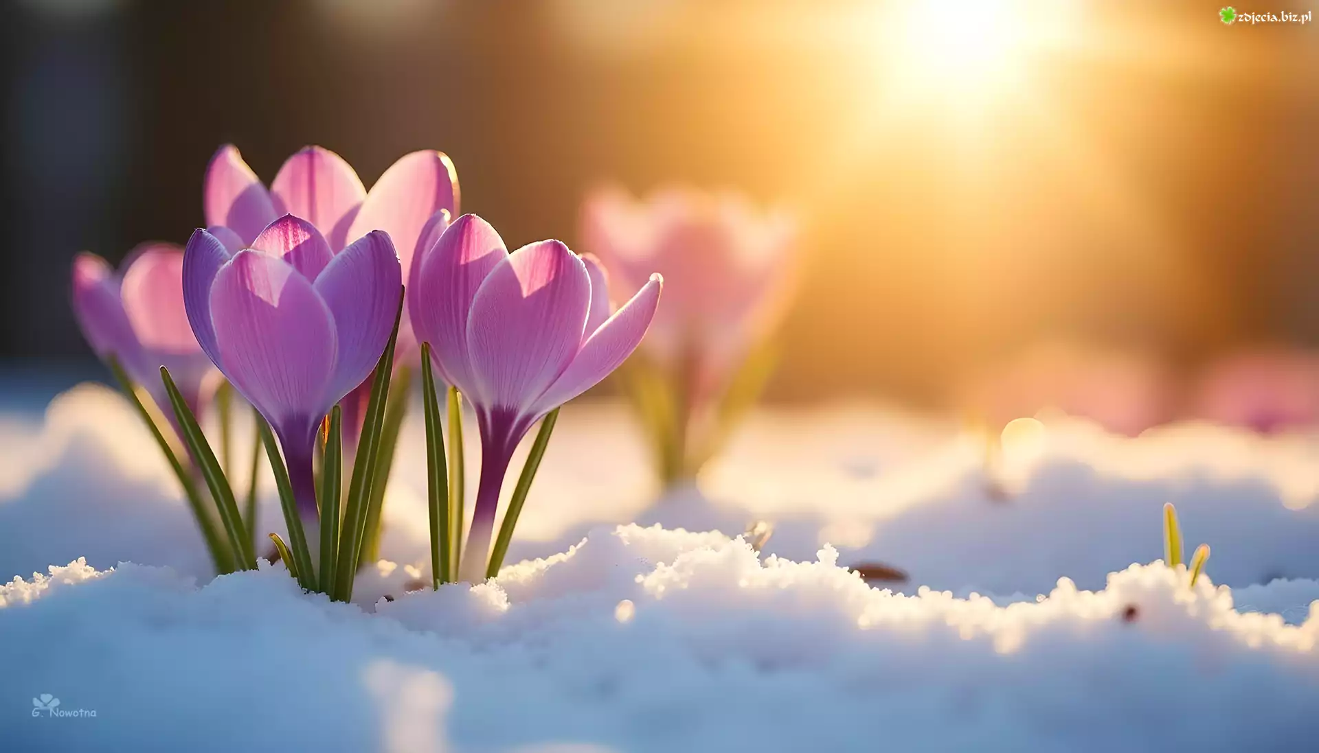 Zdjęcie Różowe, Krokusy, Kwiaty, Grafika, Rozświetlone, Tło