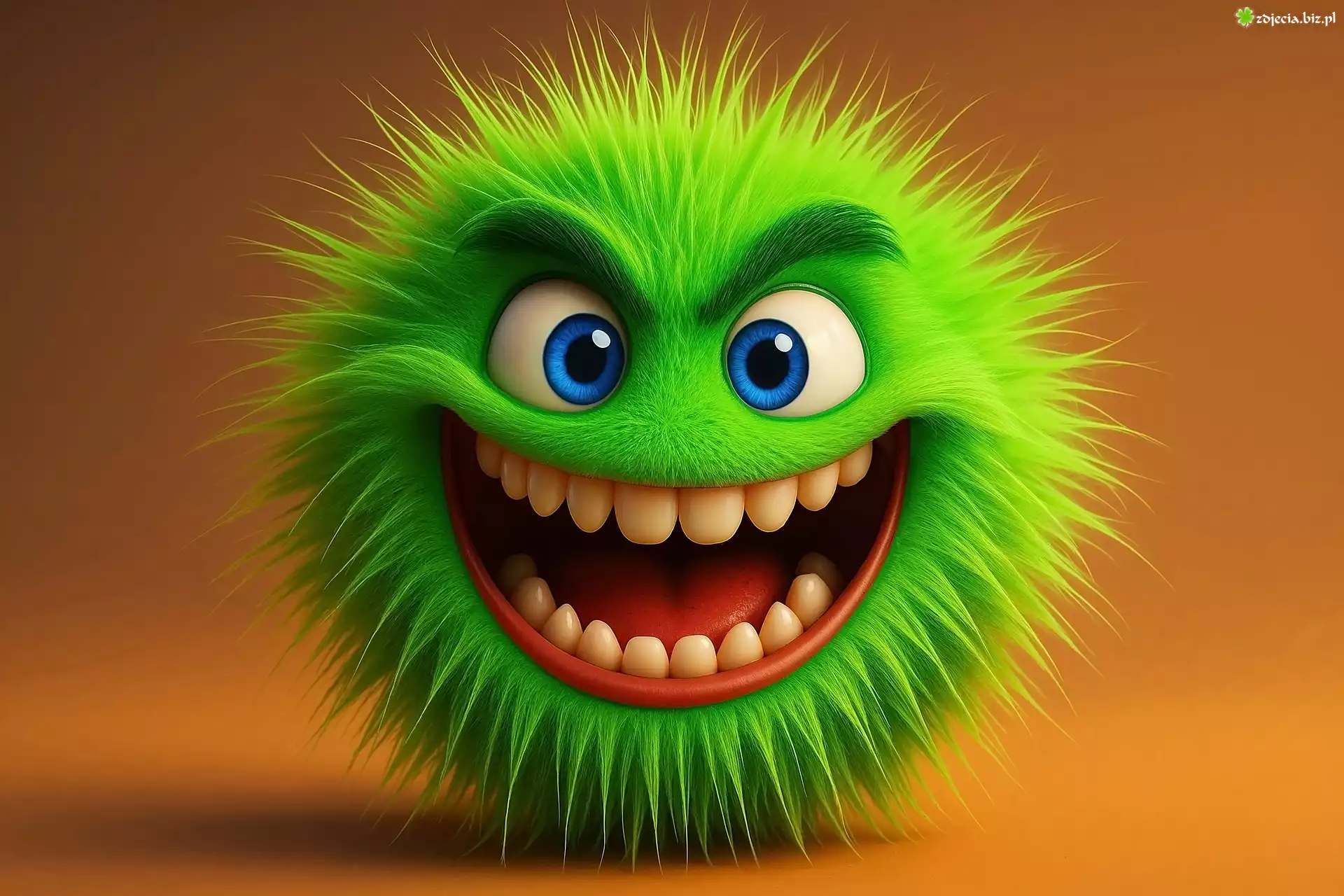 Zdjęcie Stworek, Uśmiechnięty, Uśmiech, Oczy, Zęby, Zabawny, Przyjacielski, Brązowe, Tło, Grafika, Komputerowa Śmieszne |