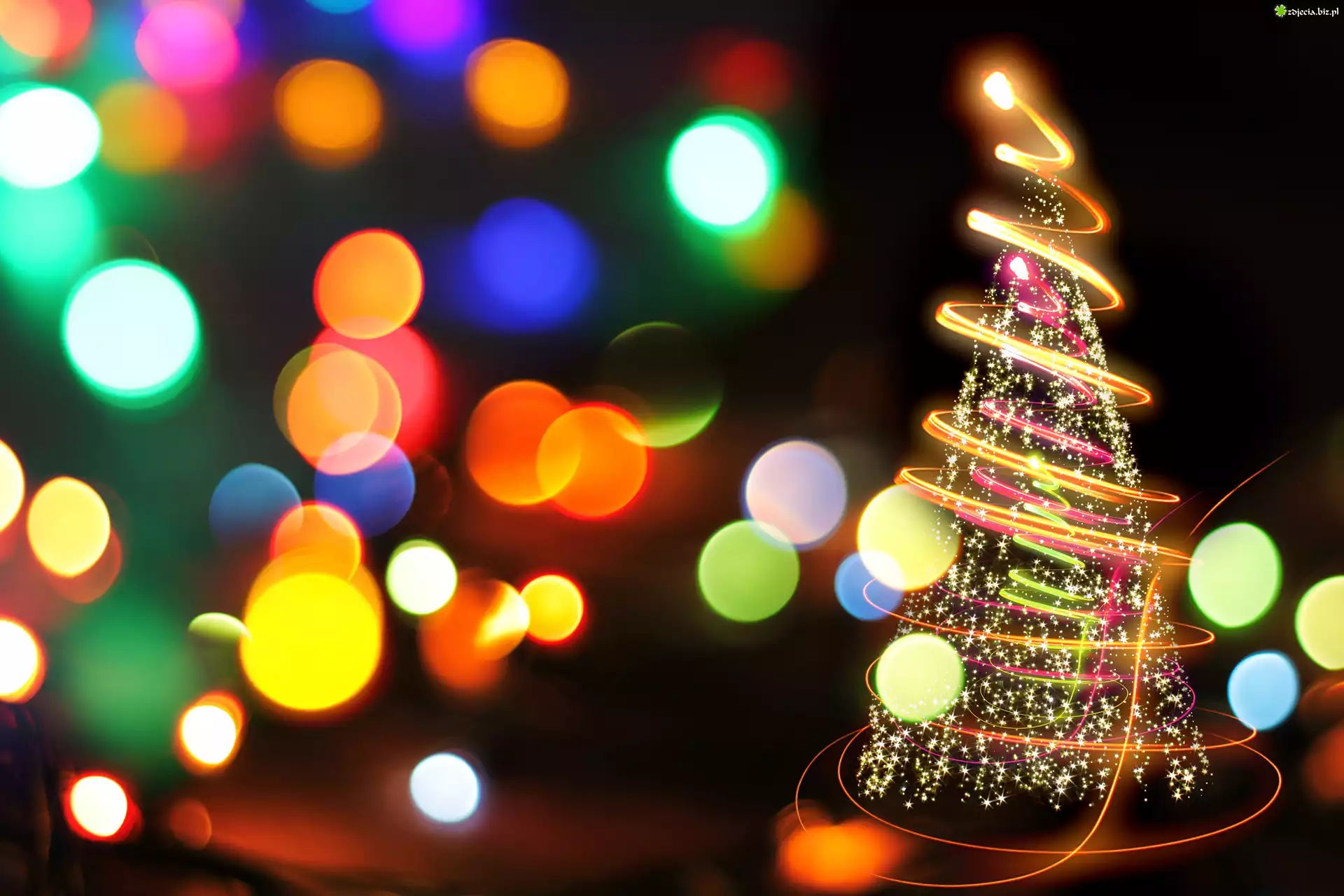 Zdjęcie Grafika, Świetlna, Choinka, Światła, Bokeh