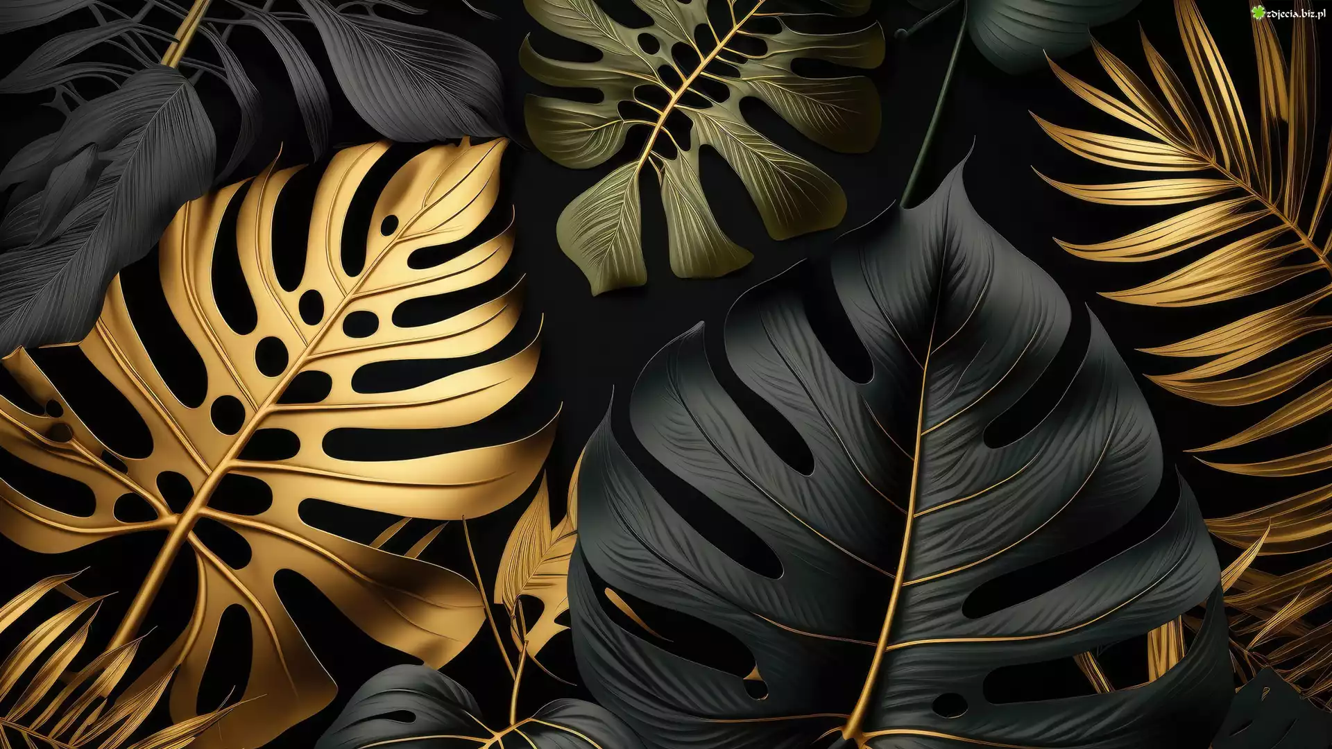 Zdjęcie Złote, Zielone, Liście, Grafika