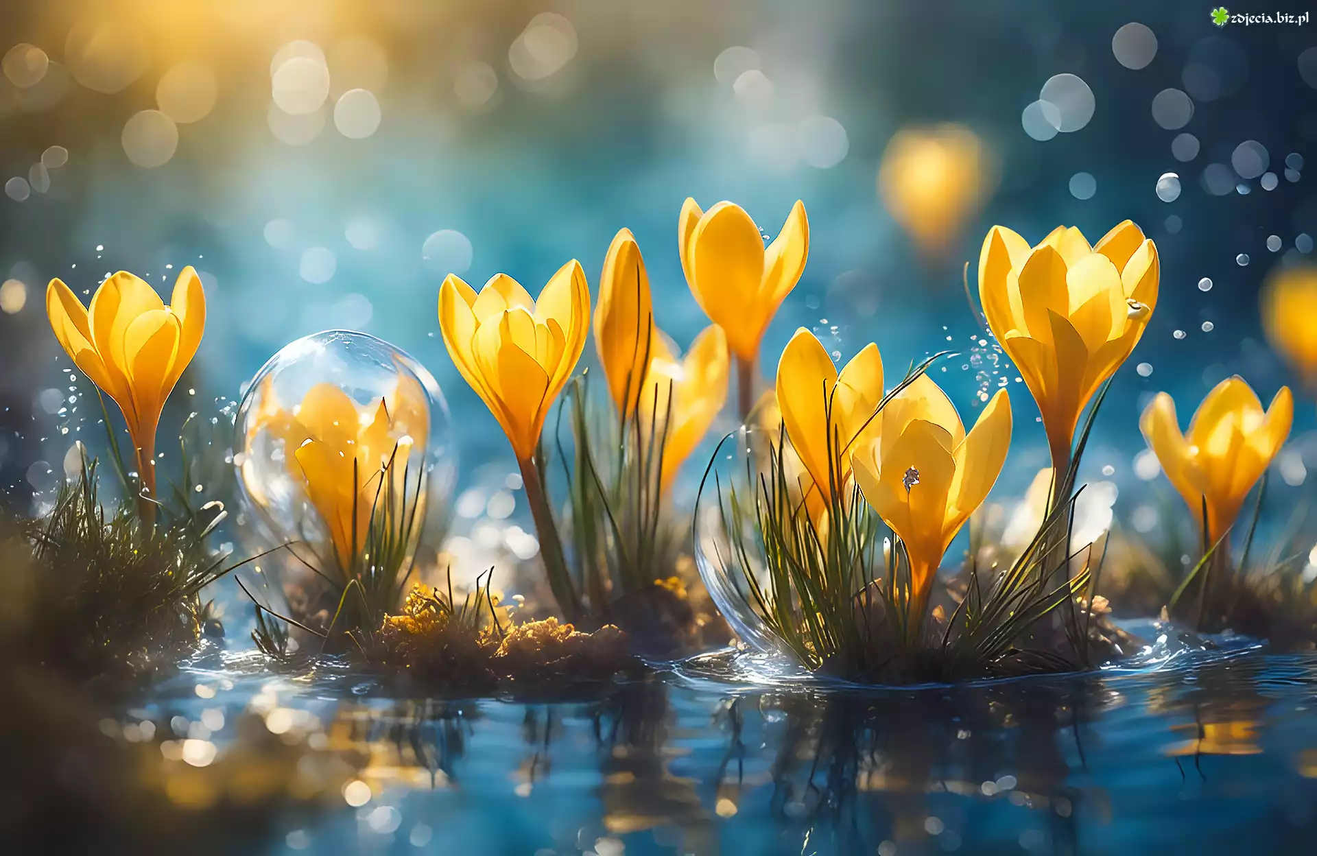 Zdjęcie Żółte, Krokusy, Kwiaty, Grafika