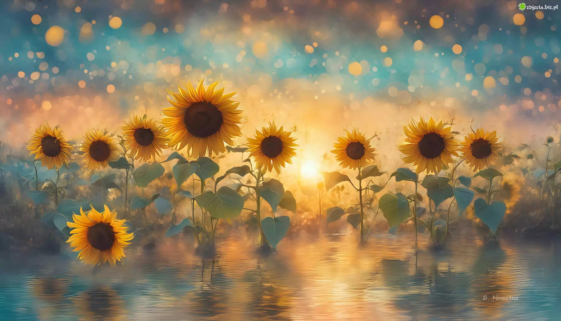 Zdjęcie Żółte, Słoneczniki, Kwiaty, Grafika