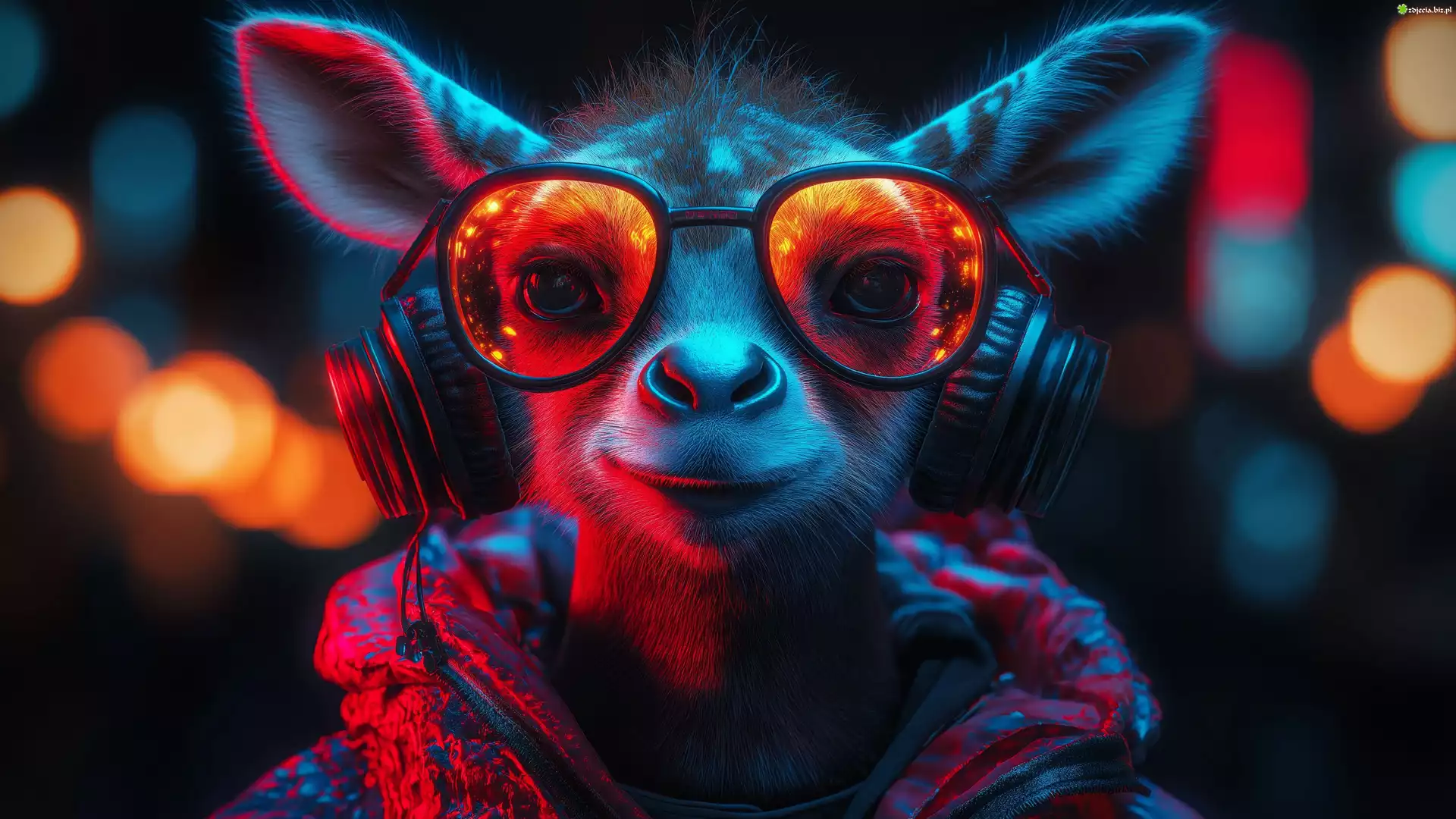 Zdjęcie Zwierzę, Okulary, Słuchawki, Grafika
