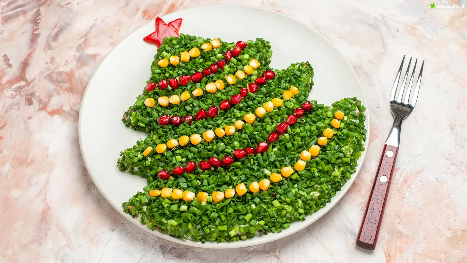 Zdjęcie Pokrojony, Szczypiorek, Kukurydza, Granat, Choinka, Widelec