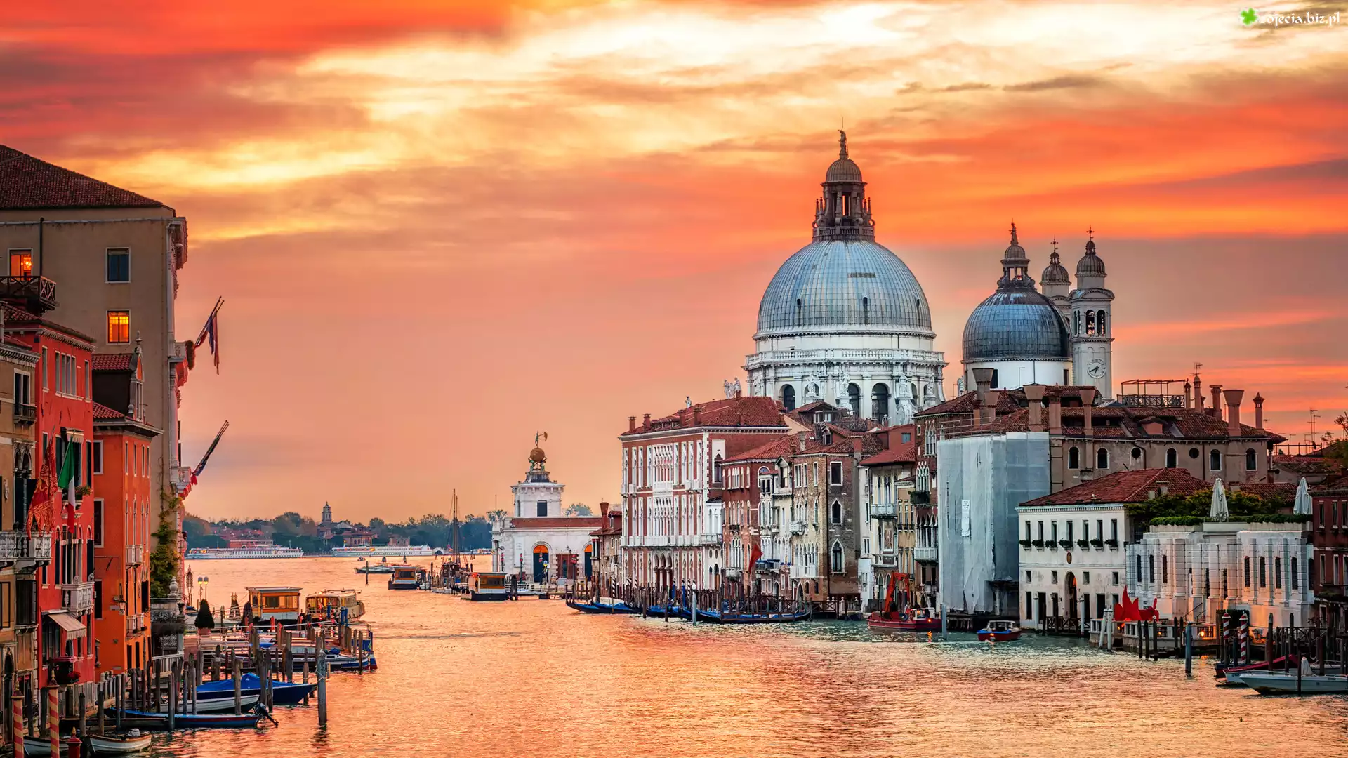Zdjęcie  Włochy, Wenecja, Kanał Canal Grande, Bazylika św. Marka, Domy, Zachód słońca