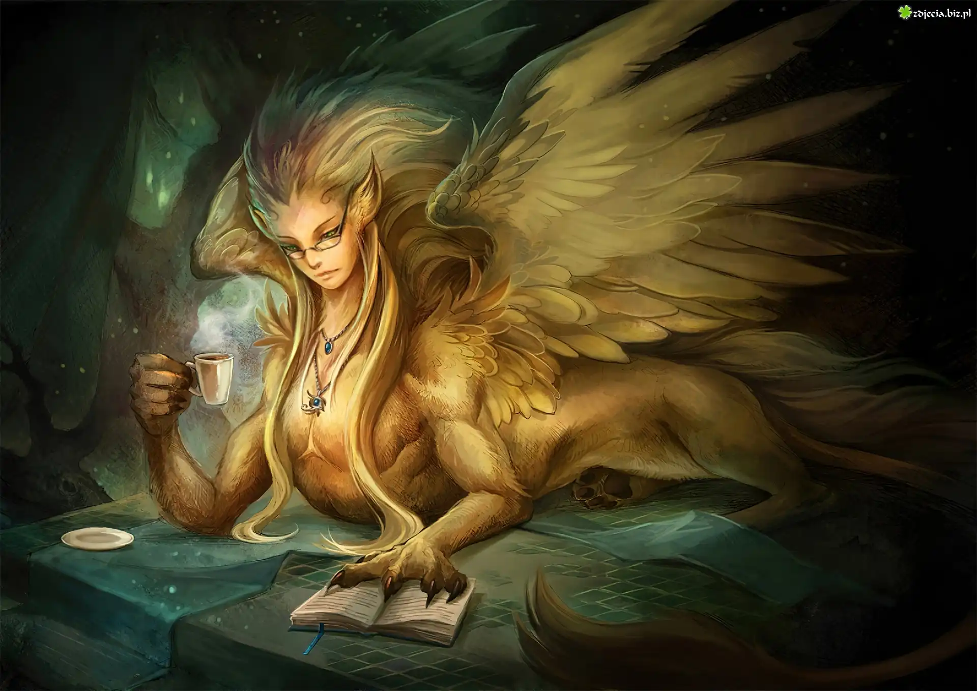 Zdjęcie Gryf, Z, Twarzą, Elfa, Lektura