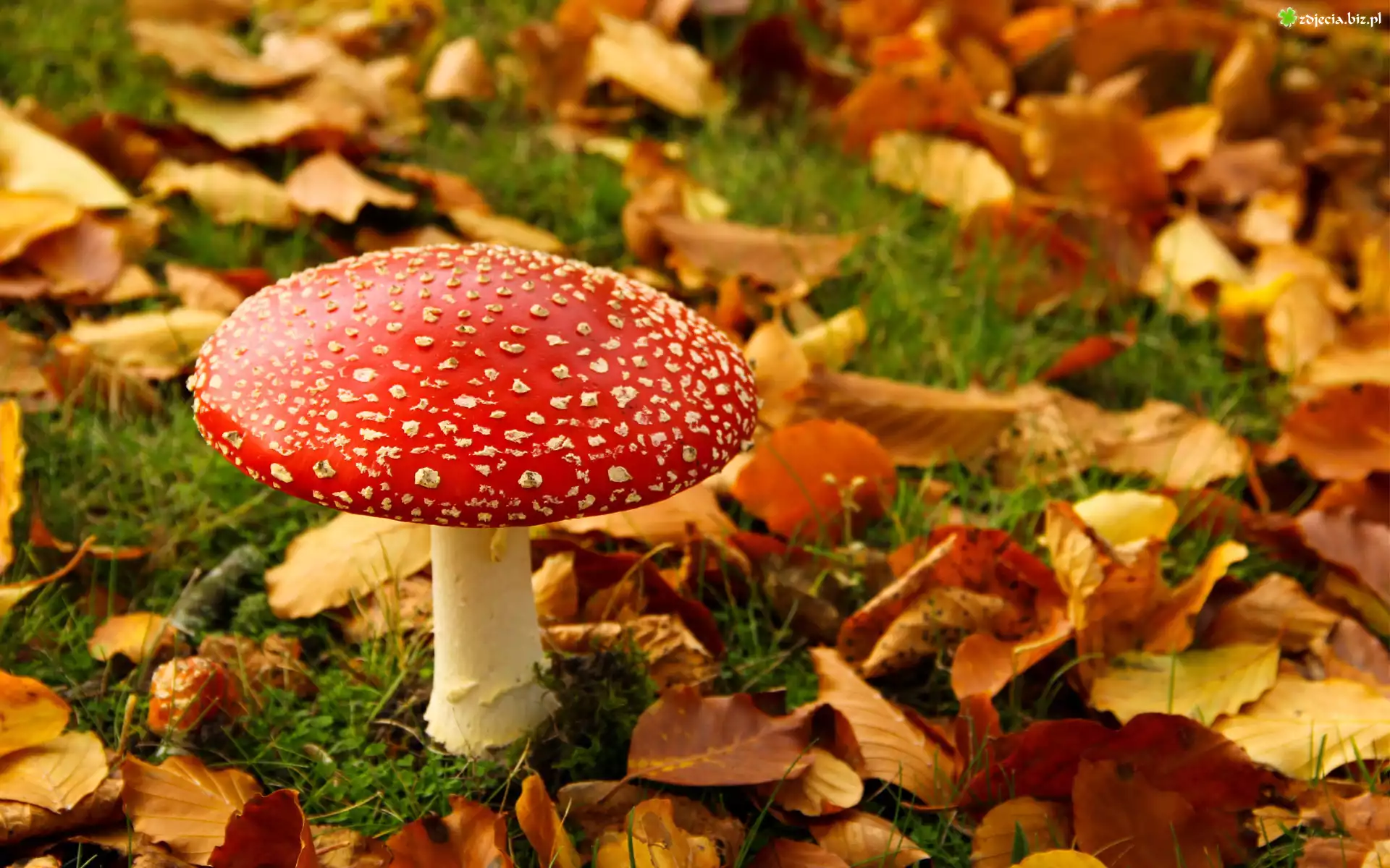 Zdjęcie Grzyb, Muchomor, Liście, Trawa