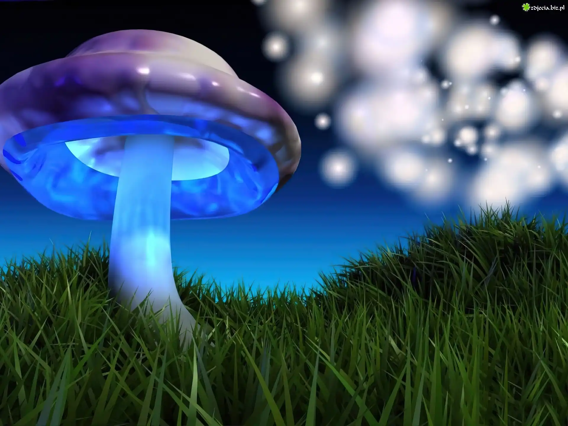Zdjęcie Grzyb, Łąka, Noc, Fantasy