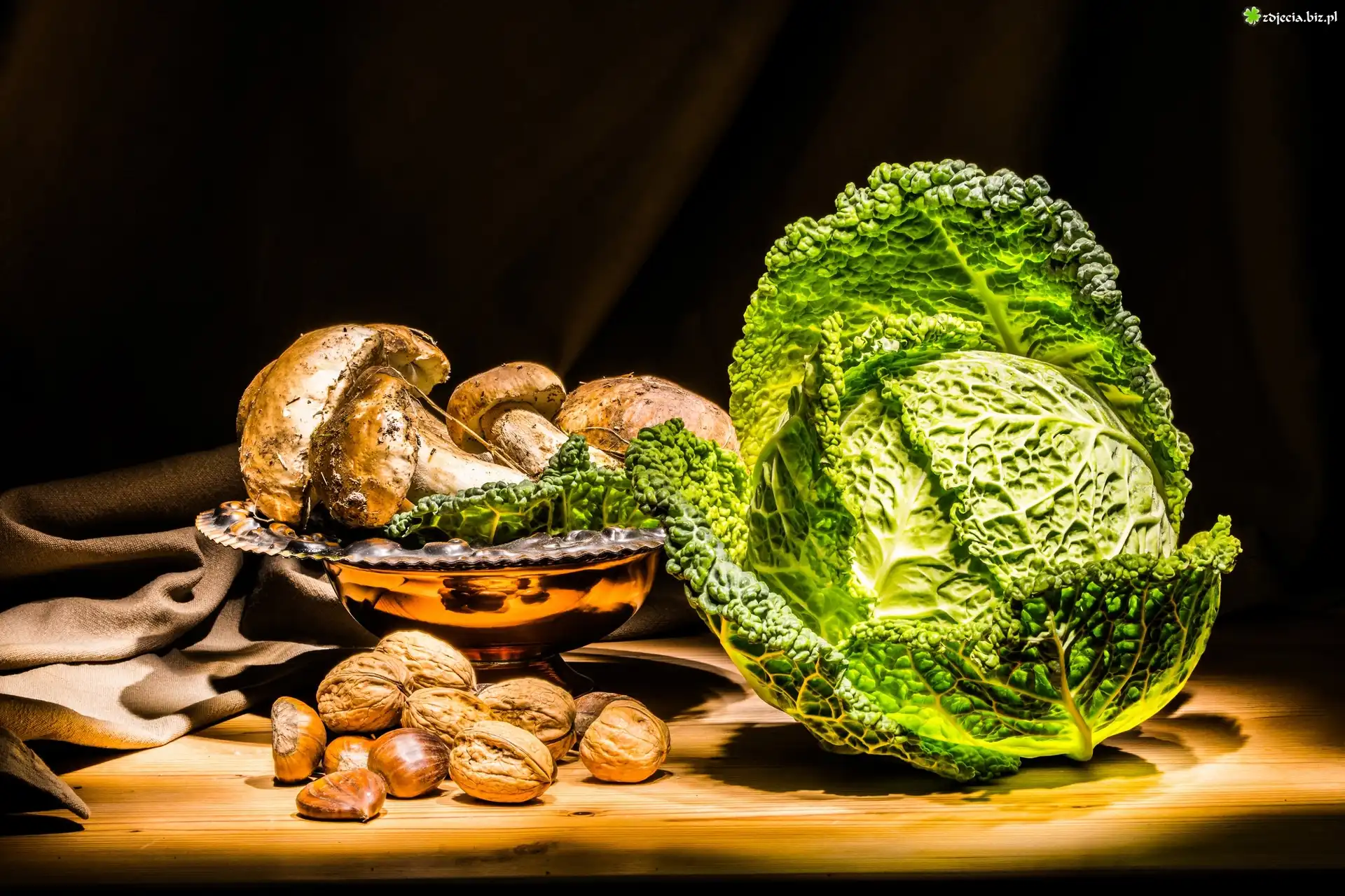Zdjęcie, Kapusta, Grzyby, Orzechy