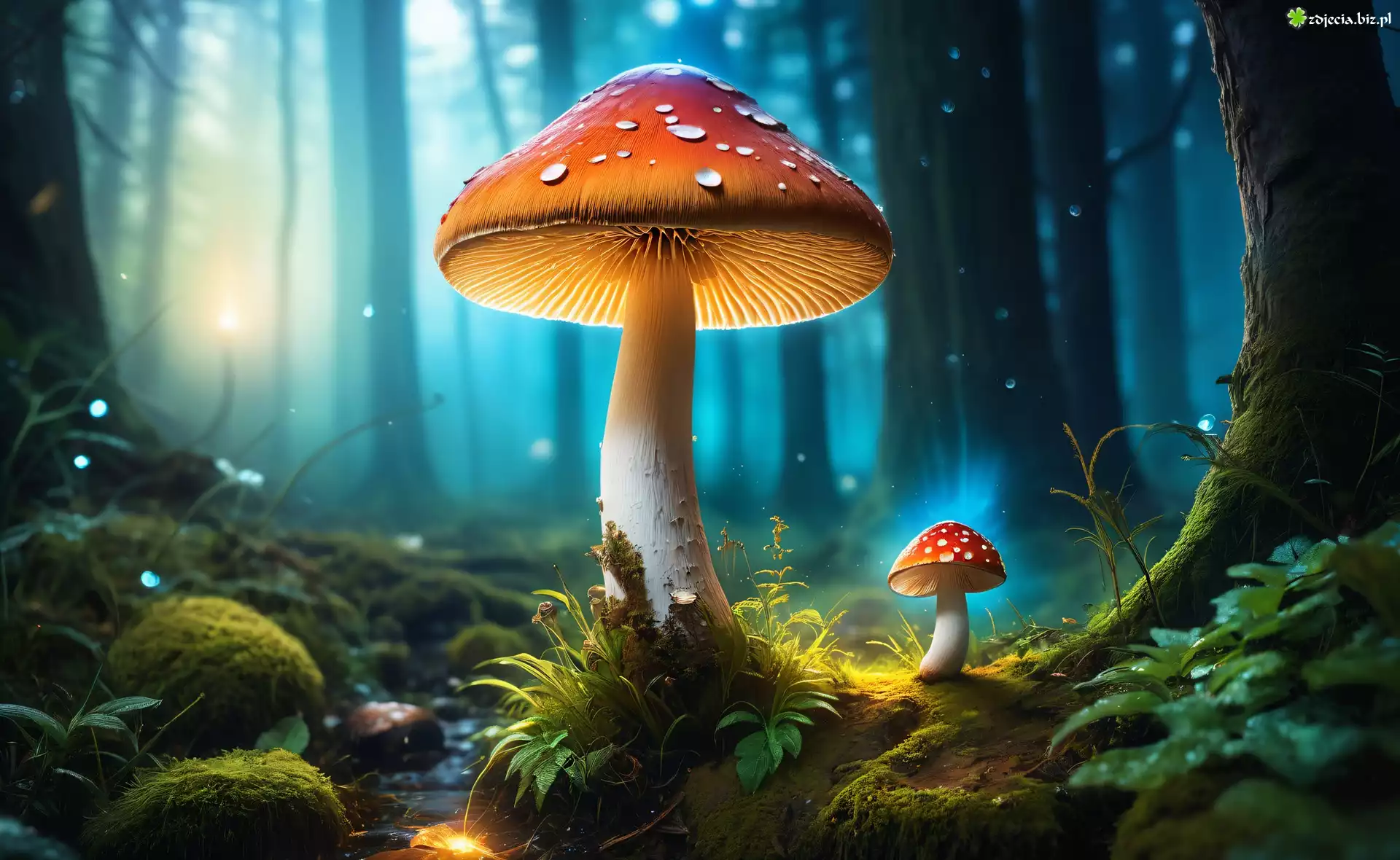 Zdjęcie Las, Grzyby, Muchomory, Grafika AI