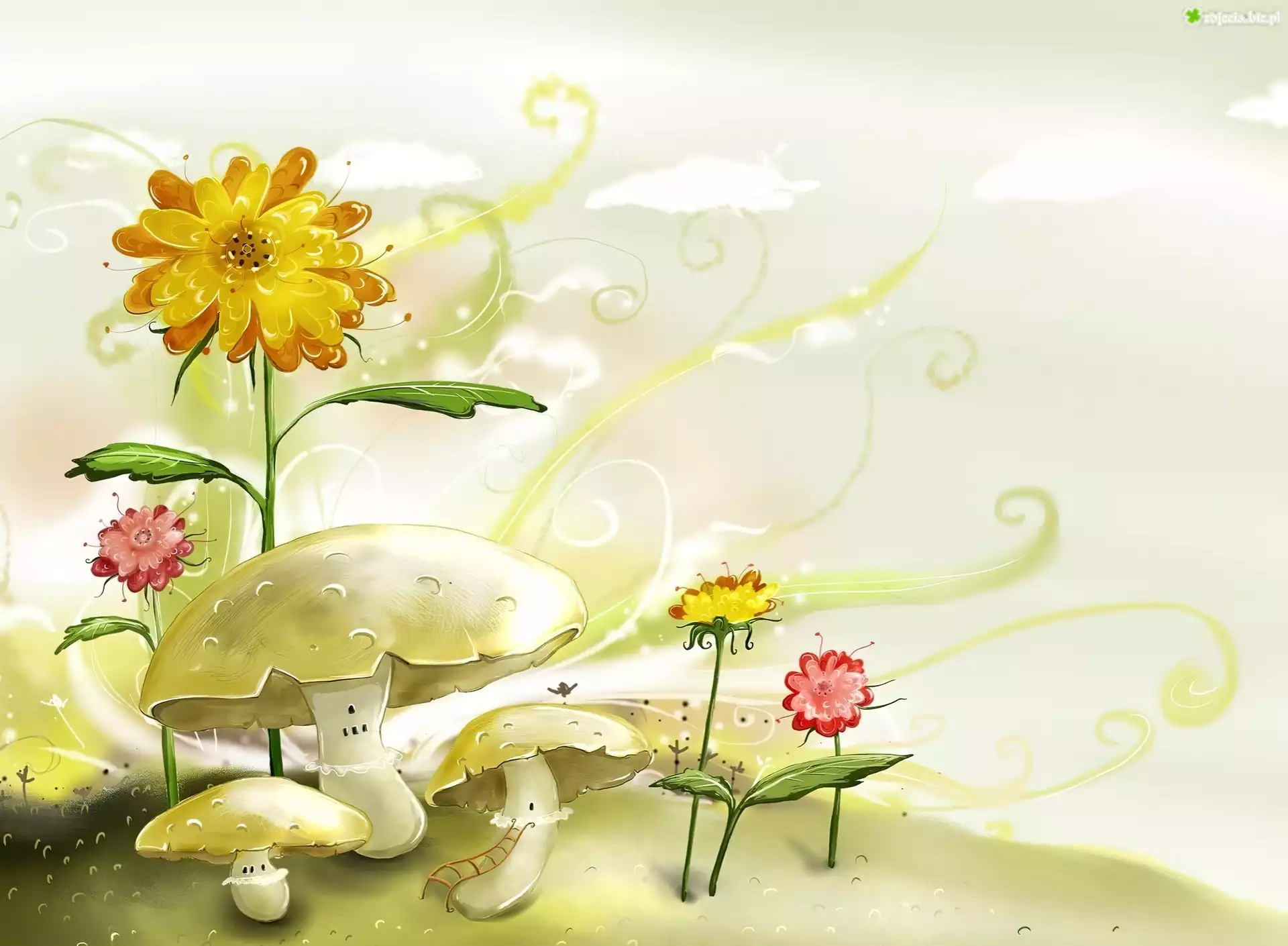 Zdjęcie Trzy, Grzyby, Kwiaty