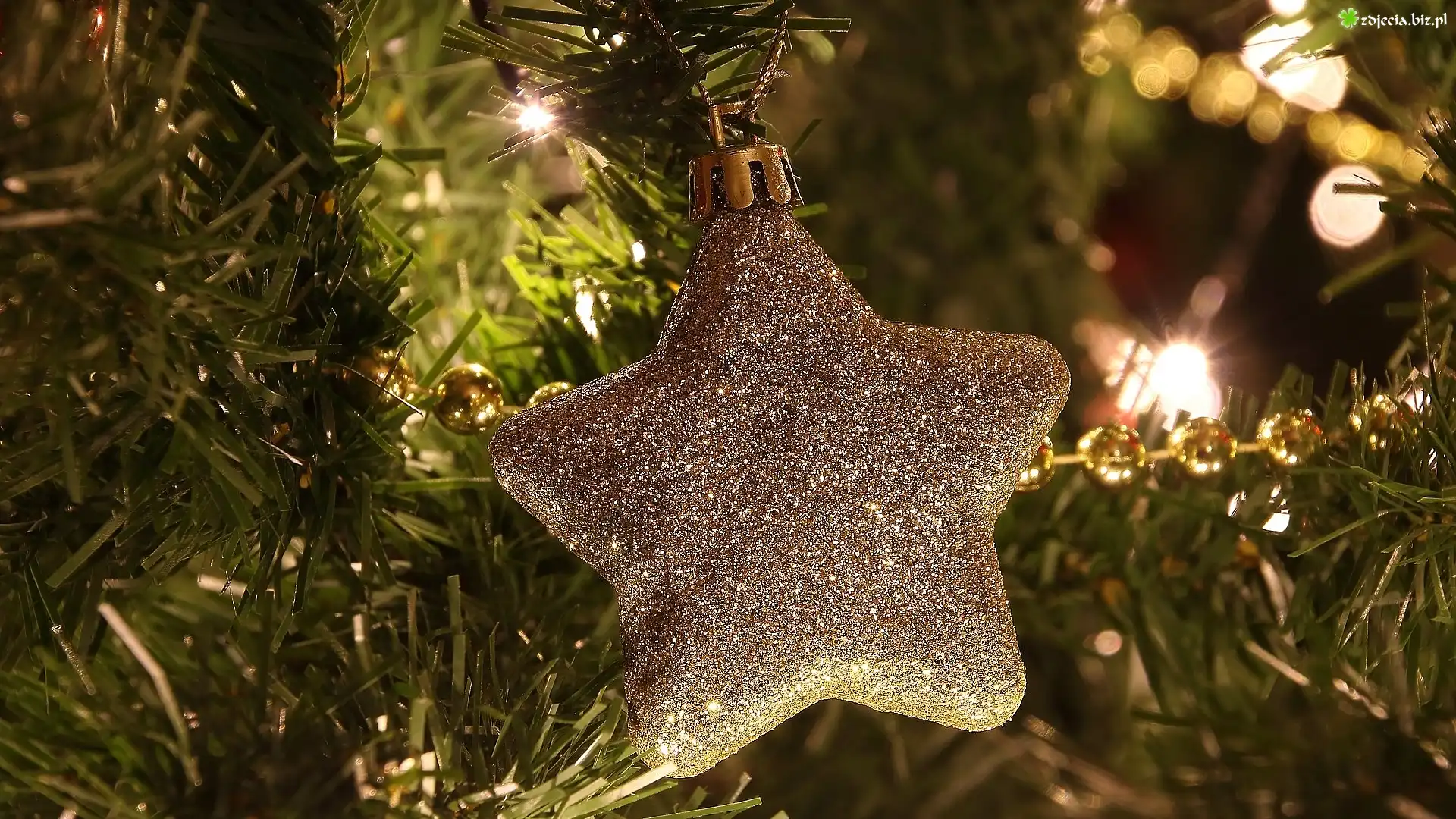 Zdjęcie Gwiazdka, Gałązki, Światełka, Świąteczne, Dekoracja