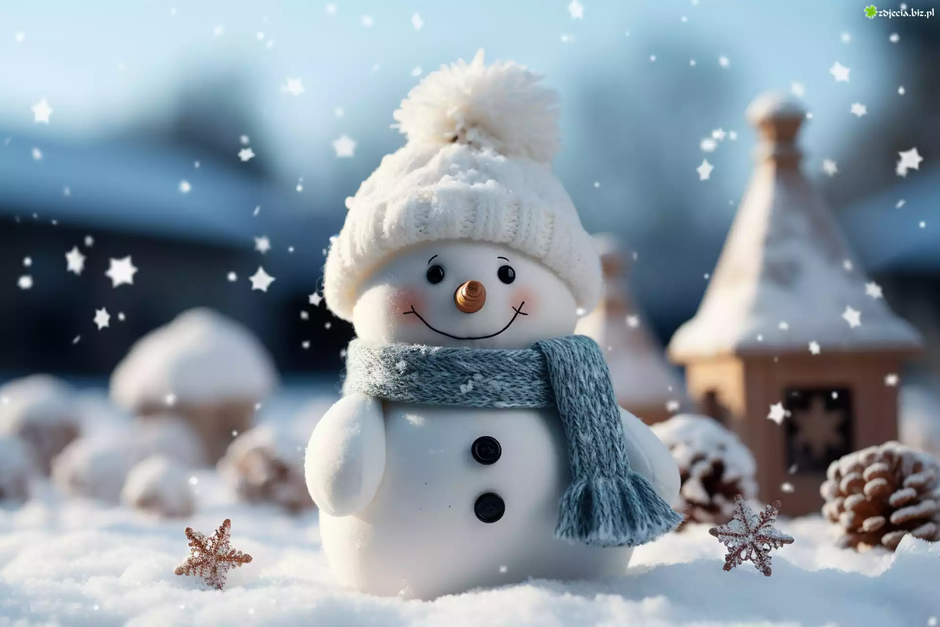 Zdjęcie Bałwan, Czapka, Szalik, Gwiazdy, Zima, Grafika