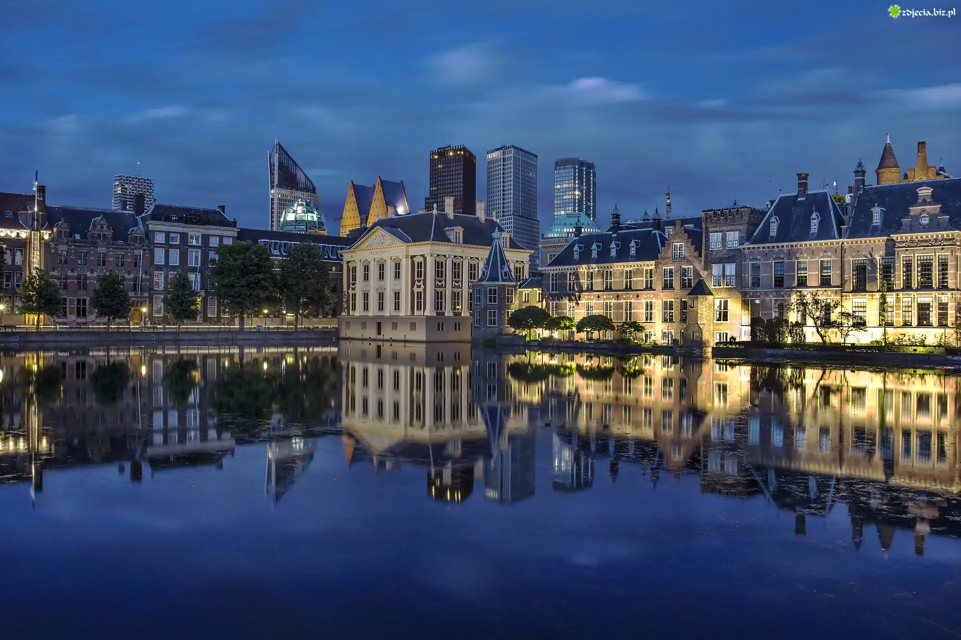 Zdjęcie Holandia, Haga, Noc, Muzeum Mauritshuis, Pałac, Zabytek, Odbicie