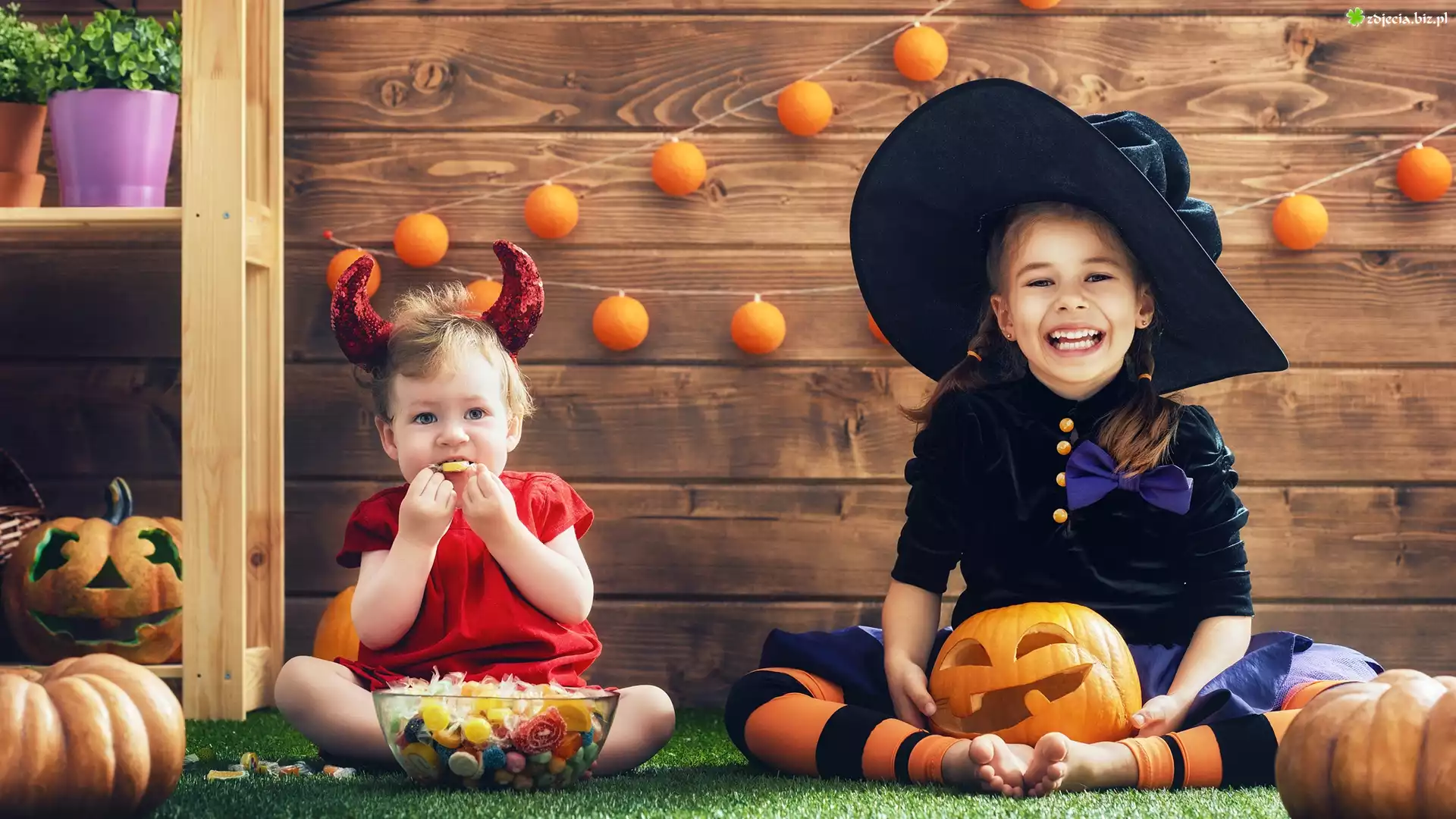 Zdjęcie Halloween, Dzieci, Dziewczynki, Kostiumy, Dynie