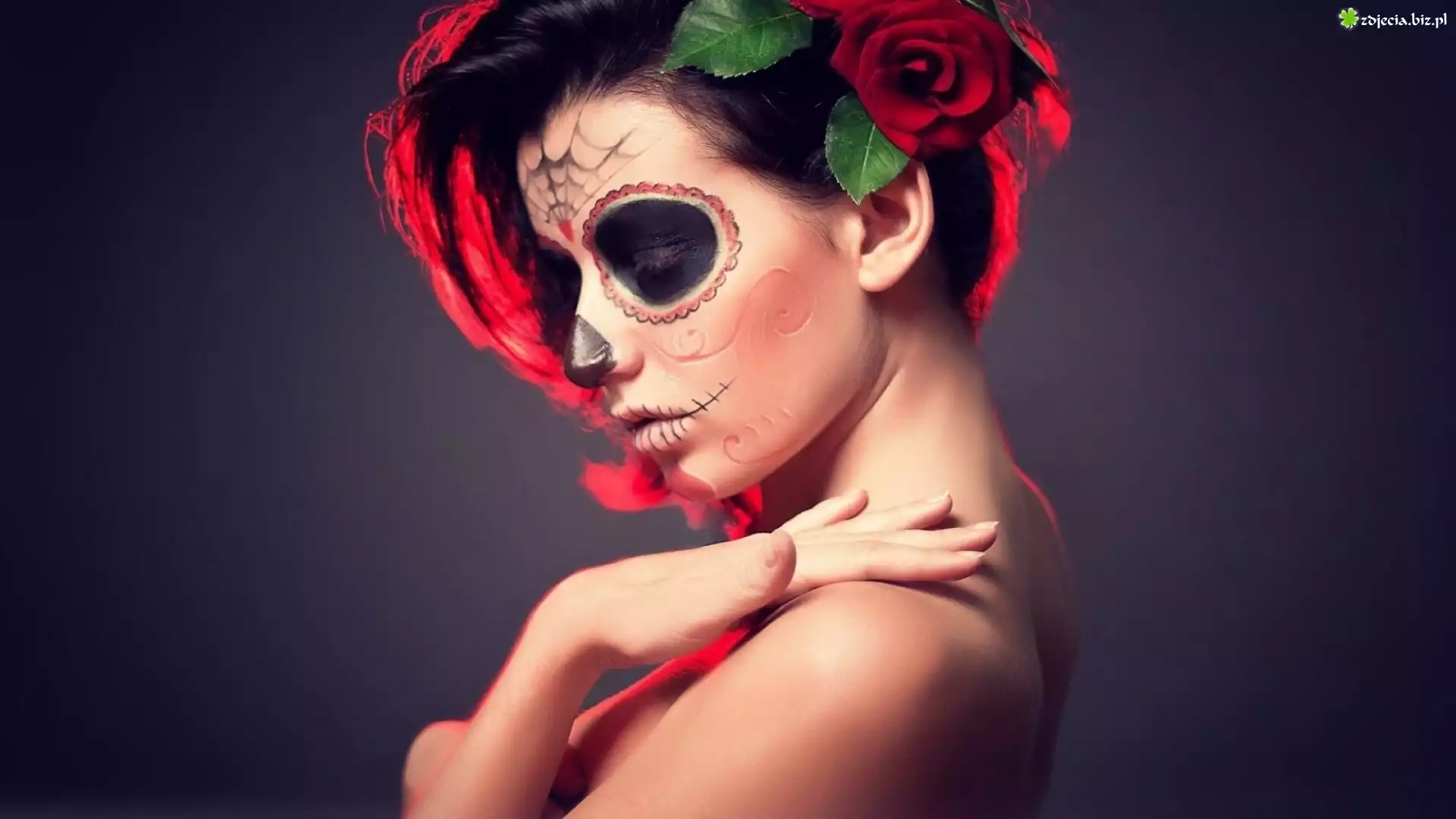 Zdjęcie Halloween, Kobieta, Makijaź, Róża