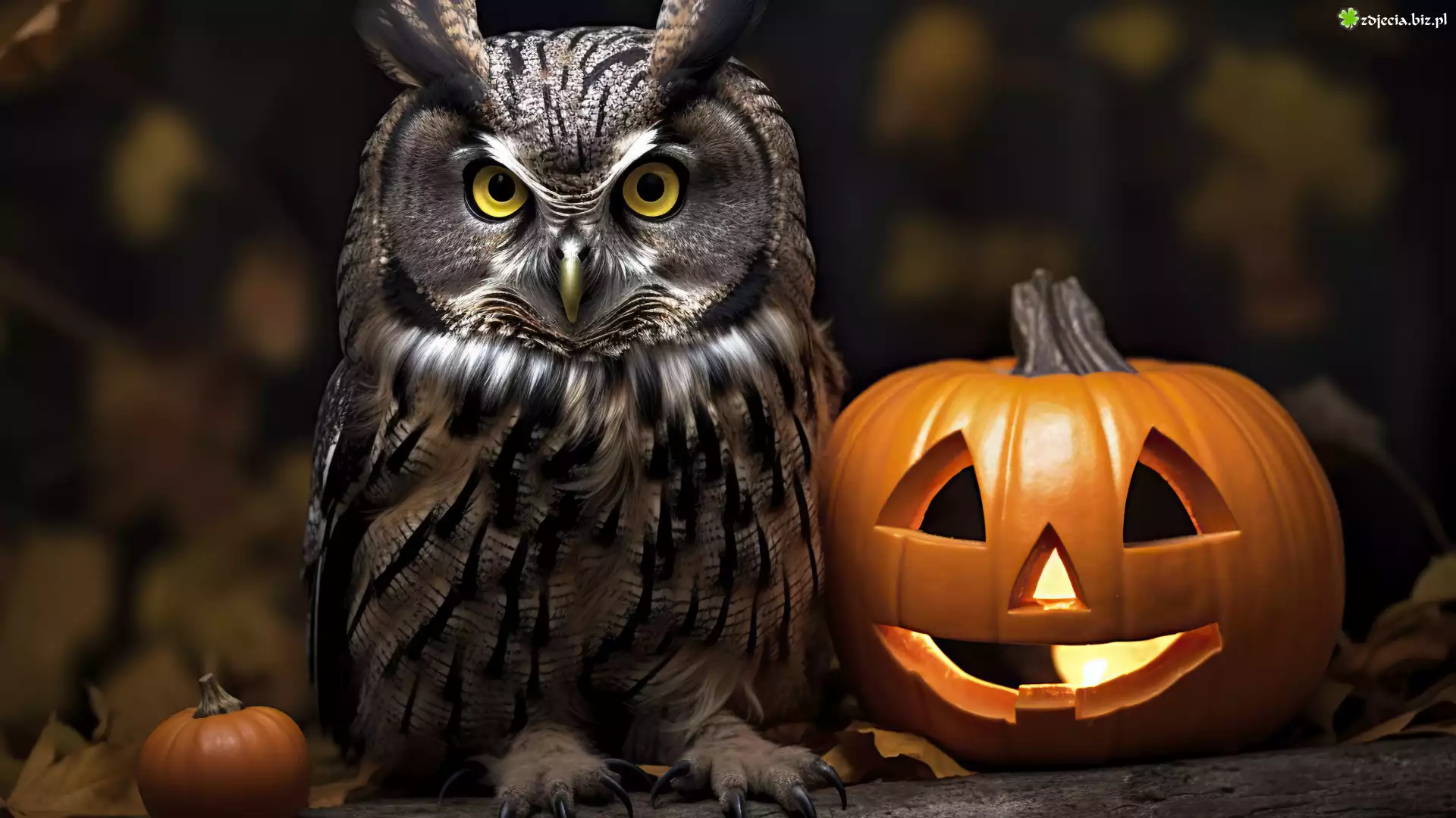 Zdjęcie Sowa, Puchacz, Dynie, Halloween