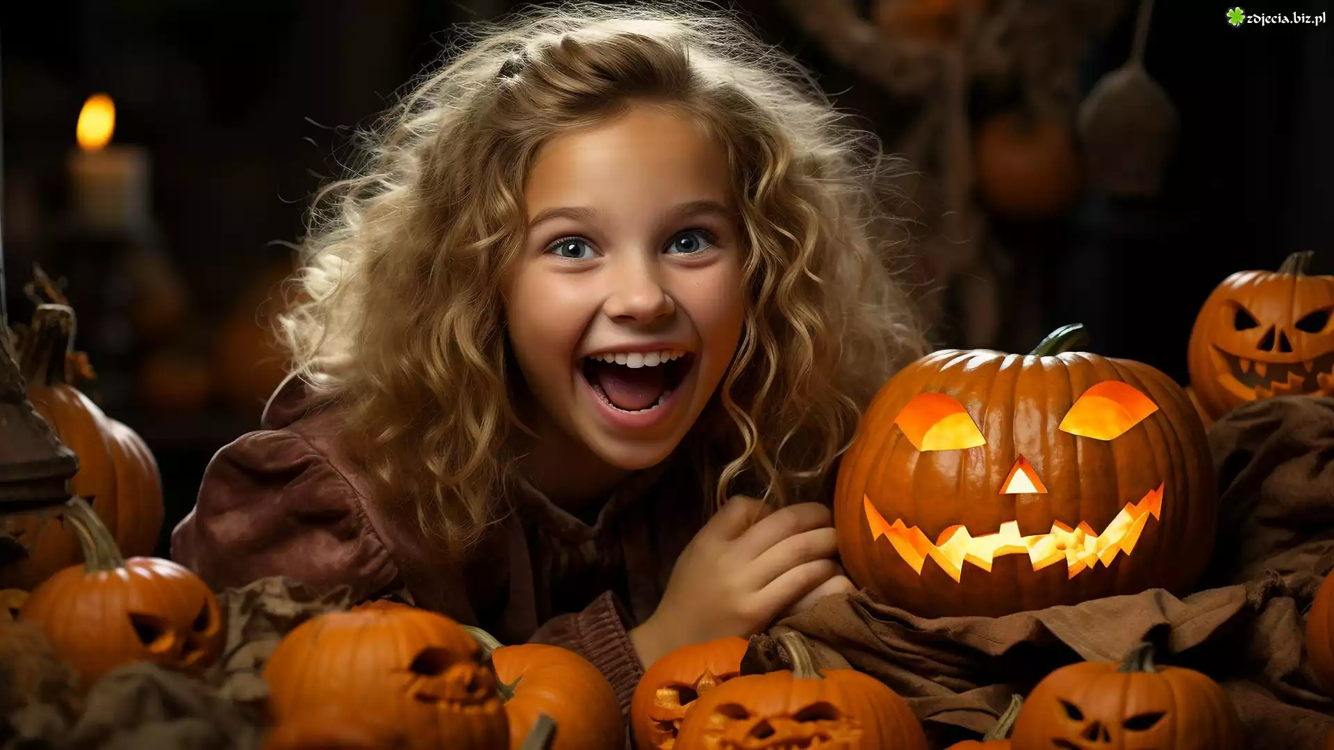 Zdjęcie Uśmiechnięta, Dziewczynka, Dynie, Halloween
