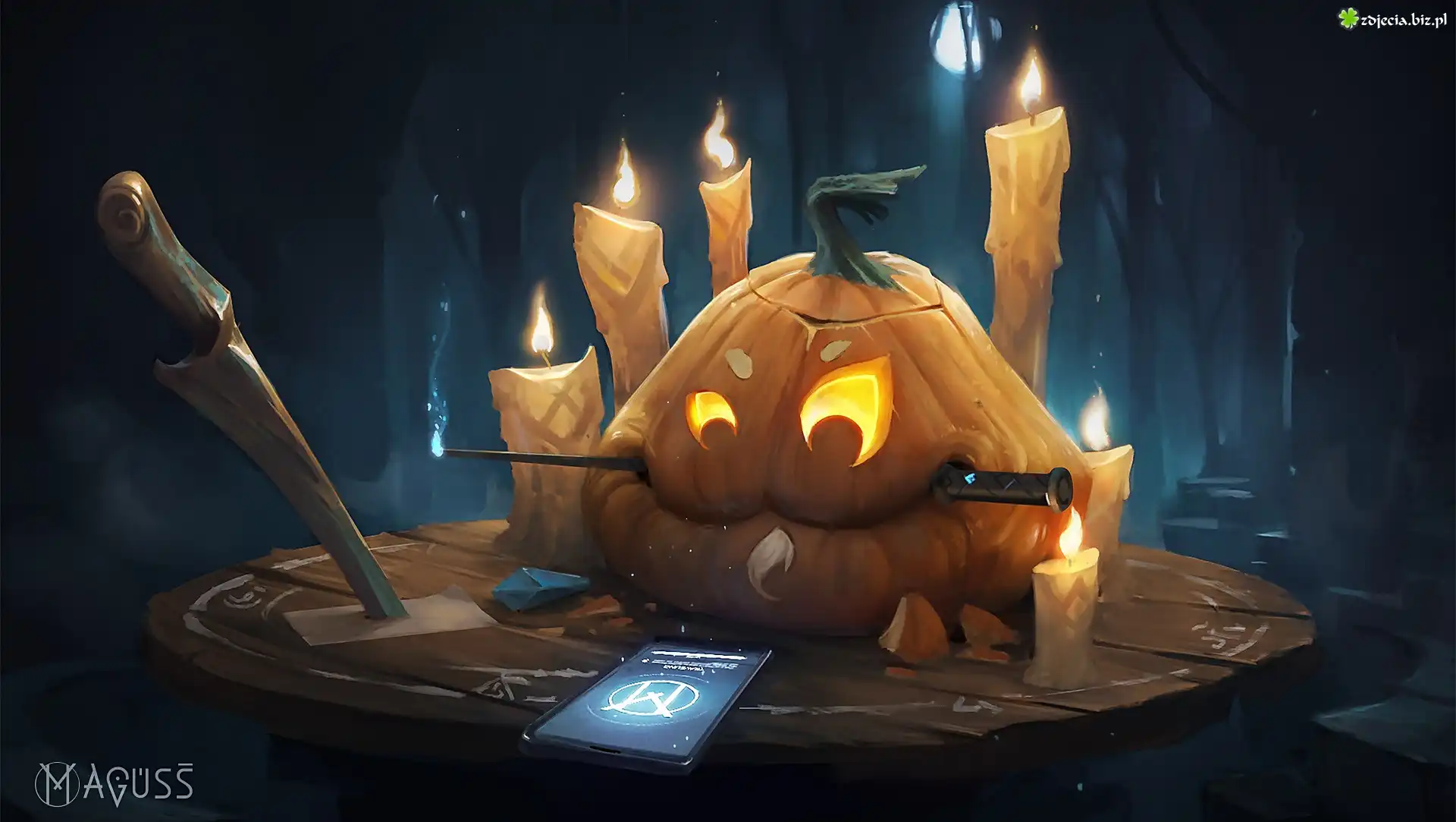 Zdjęcie Halloween, Dynia, Nóż, Świeczki, Telefon
