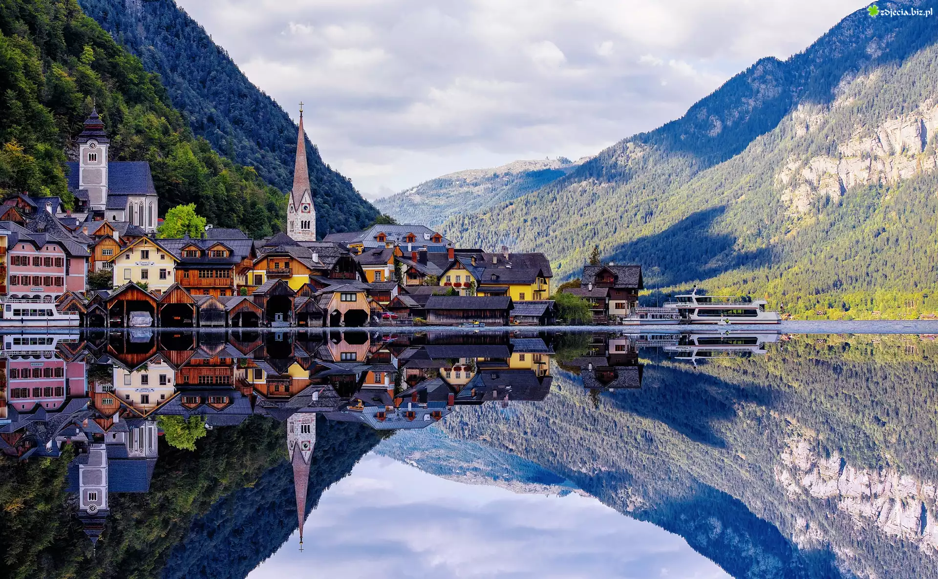 Zdjęcie Hallstatt, Austria, Jezioro, Góry Alpy, Odbicie