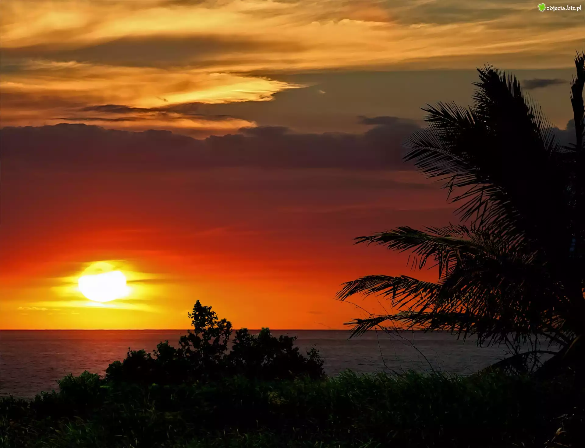 Zdjęcie, Hawaje, Zachód, Morze, Palma