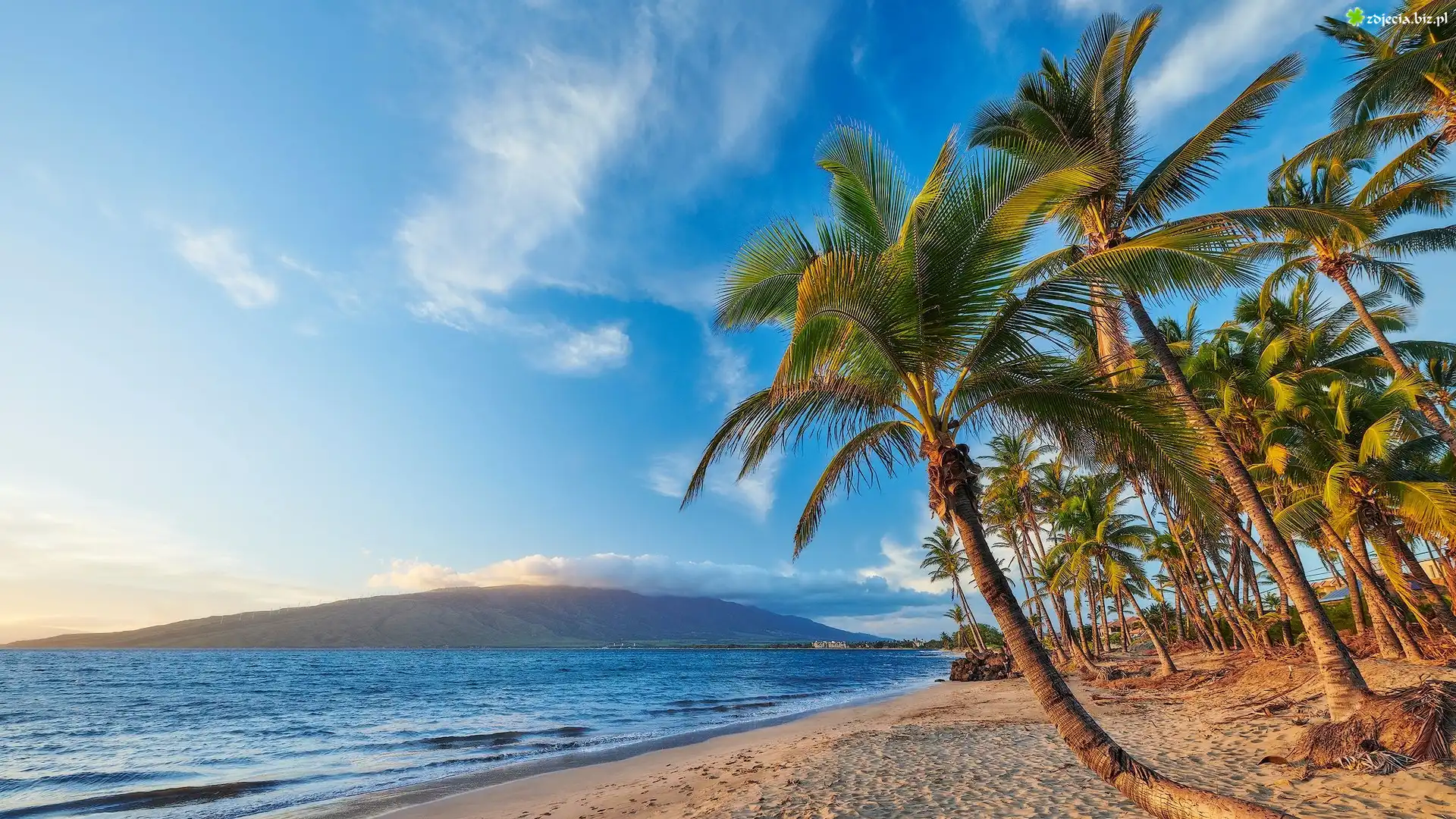 Zdjęcie Hawaje, Wyspa Maui, Morze, Palmy, Wzgórza