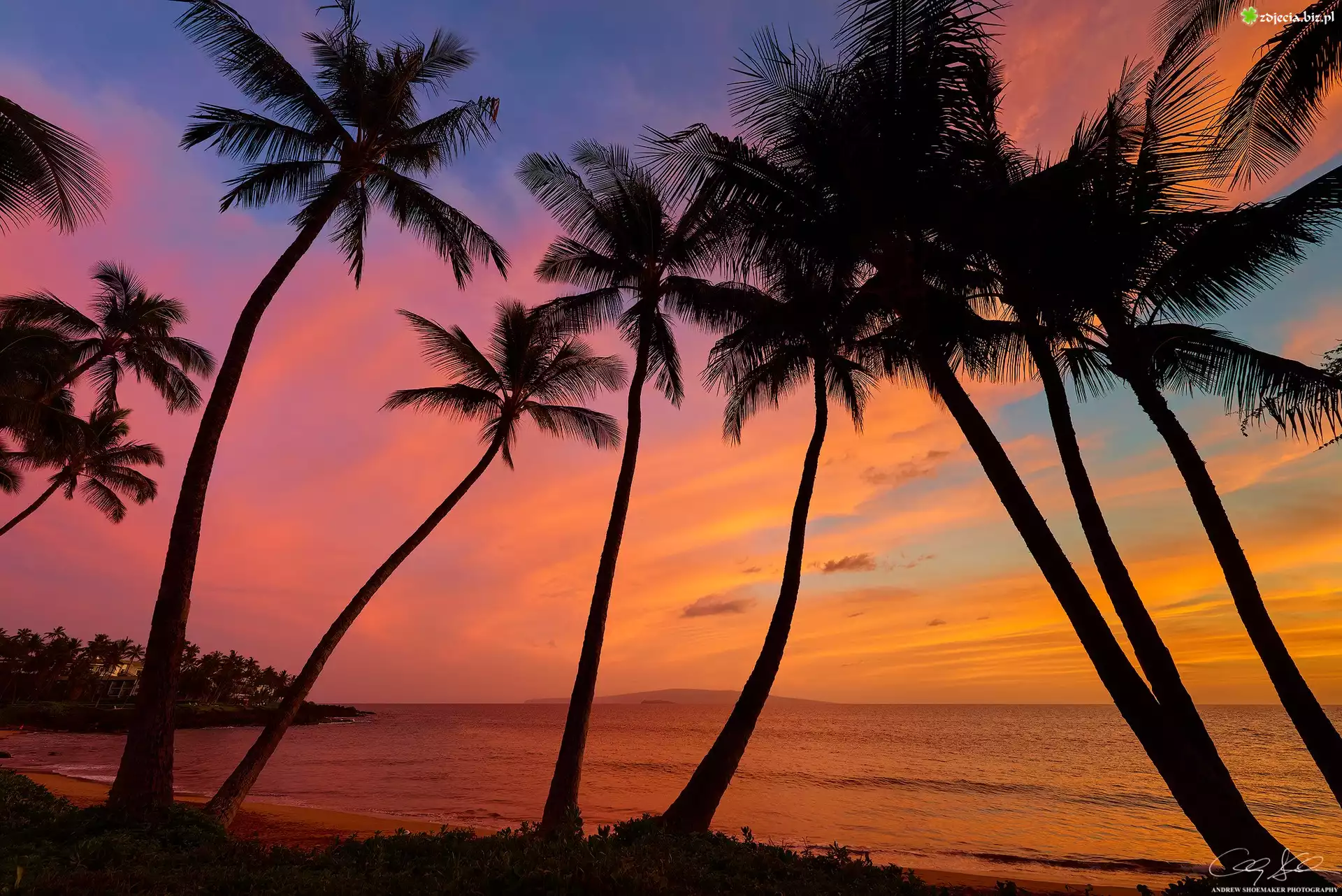 Zdjęcie Hawaje, Morze, Zachód słońca, Palmy