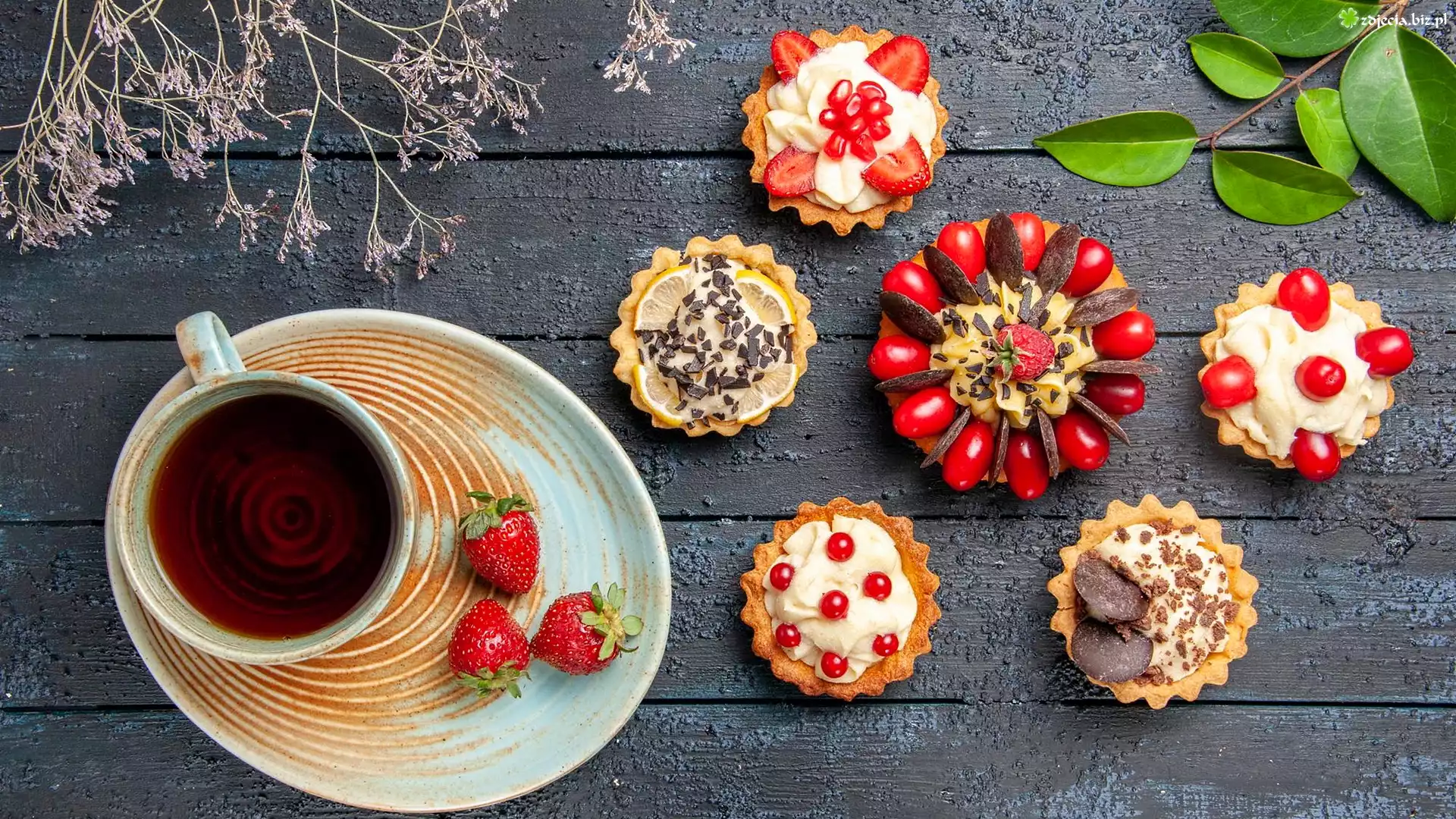 Zdjęcie Herbata, Filiżanka, Babeczki, Deski