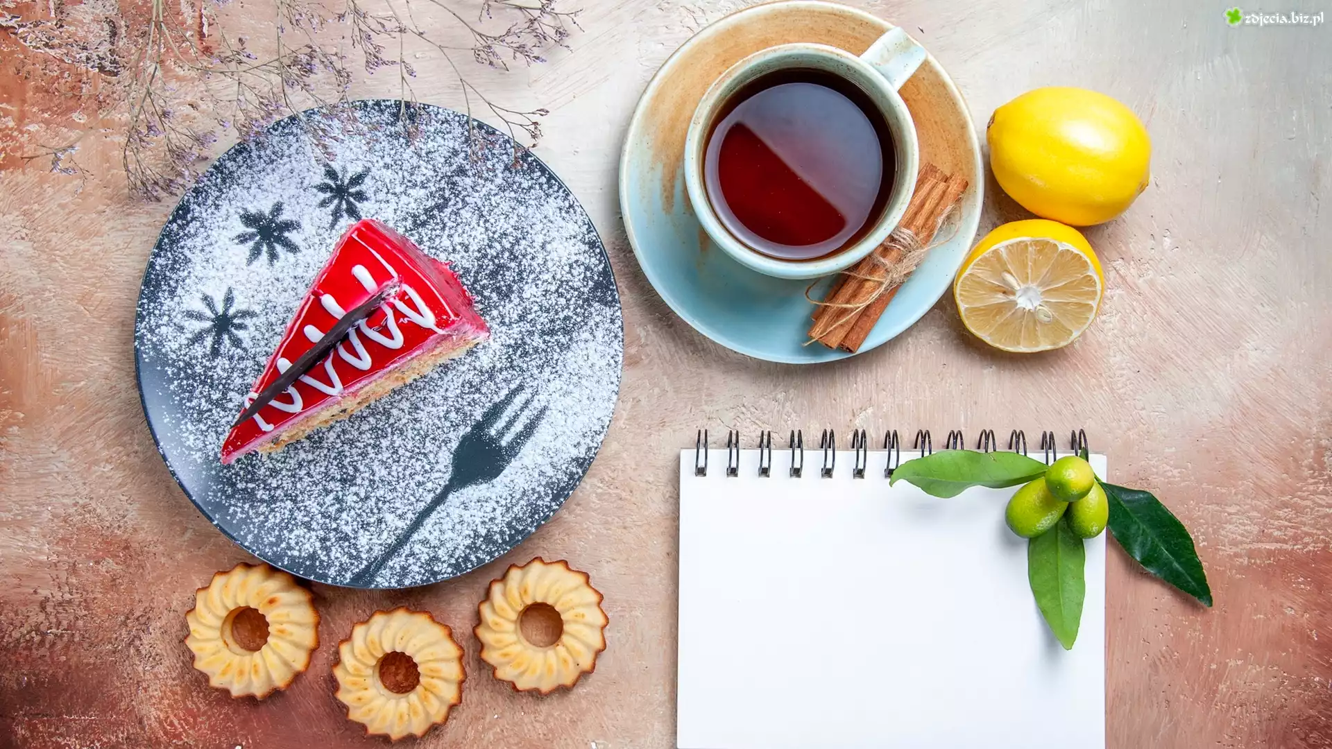 Zdjęcie, Herbata, Cytryny, Kartka, Ciasto, Ciasteczka, Talerz
