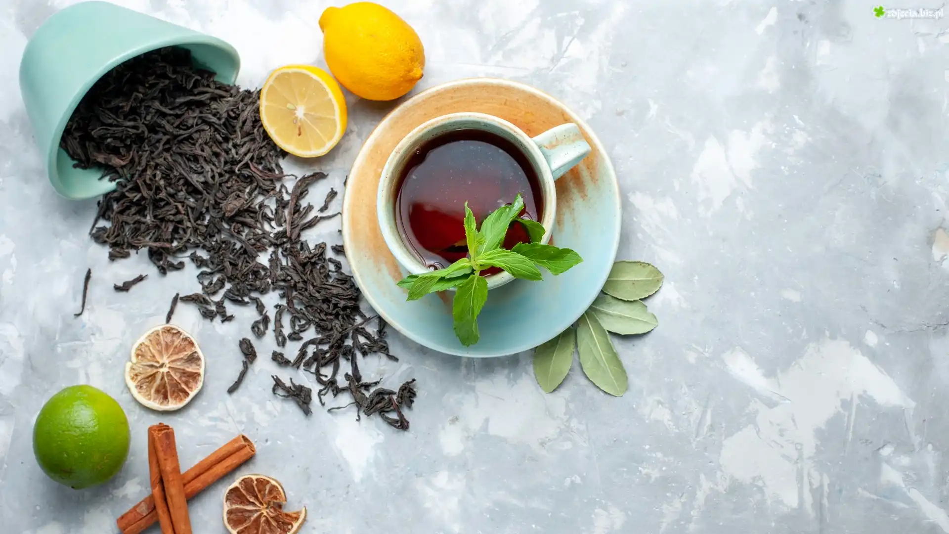 Zdjęcie Herbata, Filiżanka, Mięta, Cytryna, Limonka