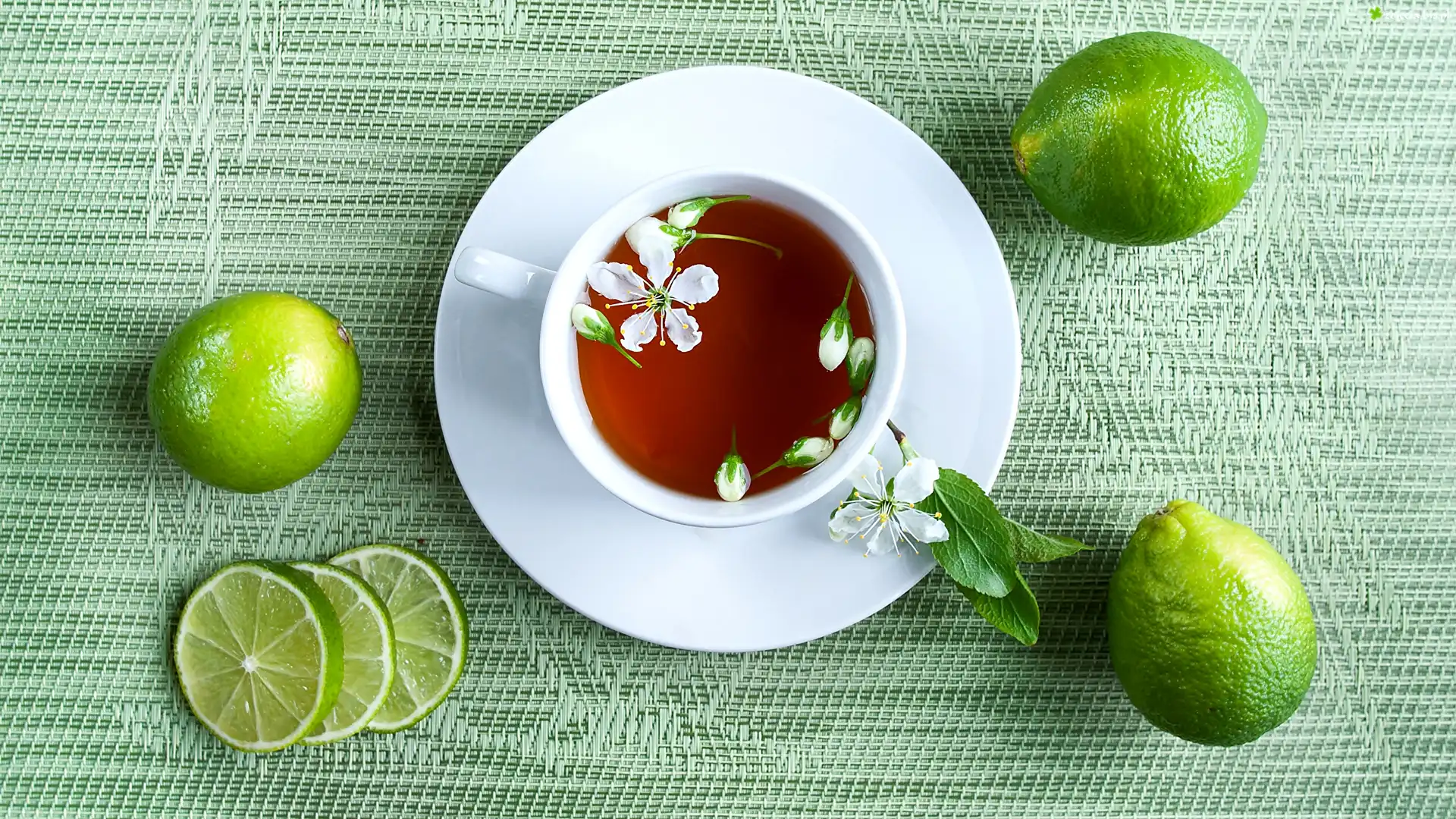 Zdjęcie, Herbata, Filiżanka, Kwiaty, Limonka, Plastry