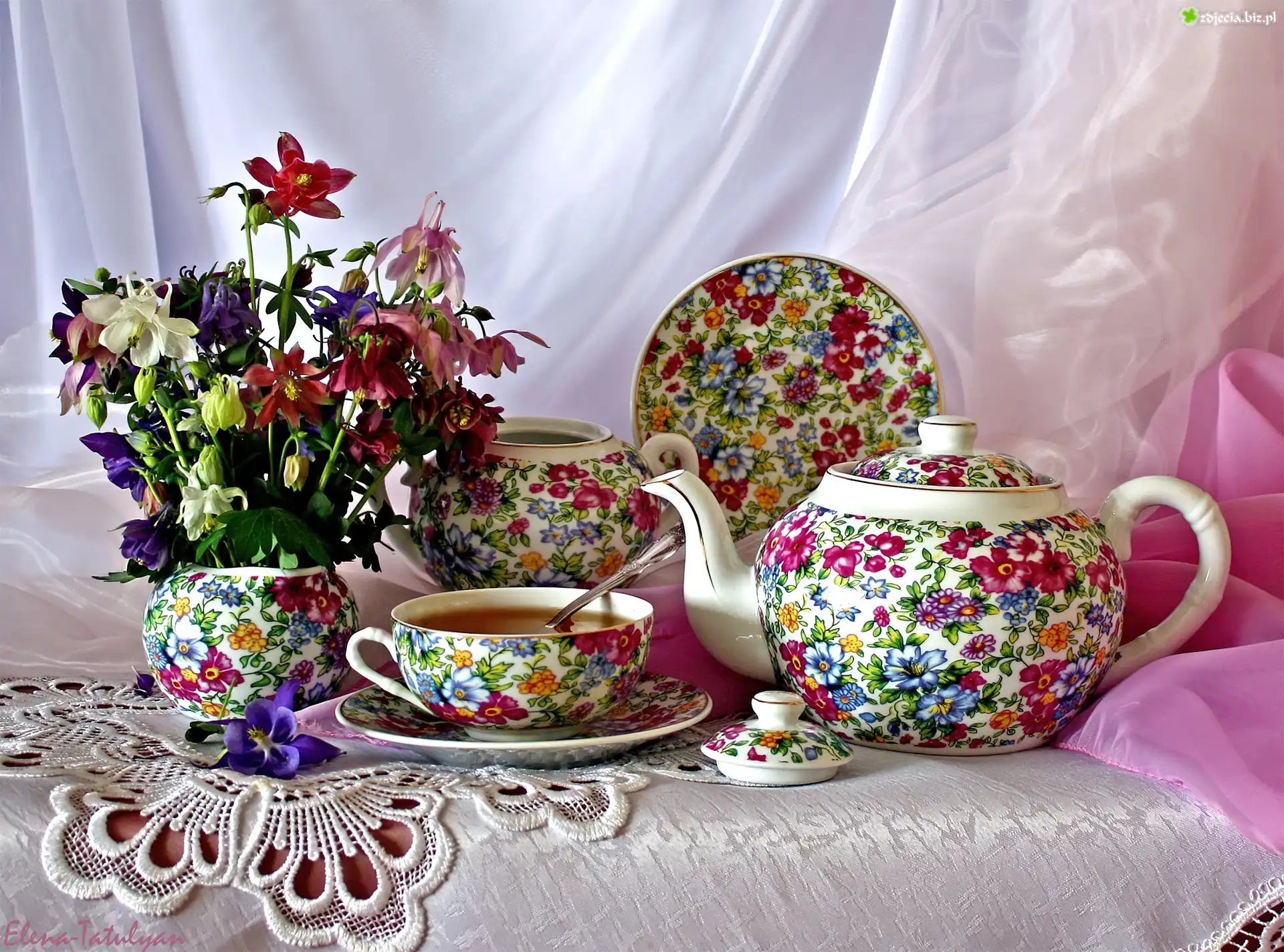 Zdjęcie Zastawa, Herbata, Kwiaty