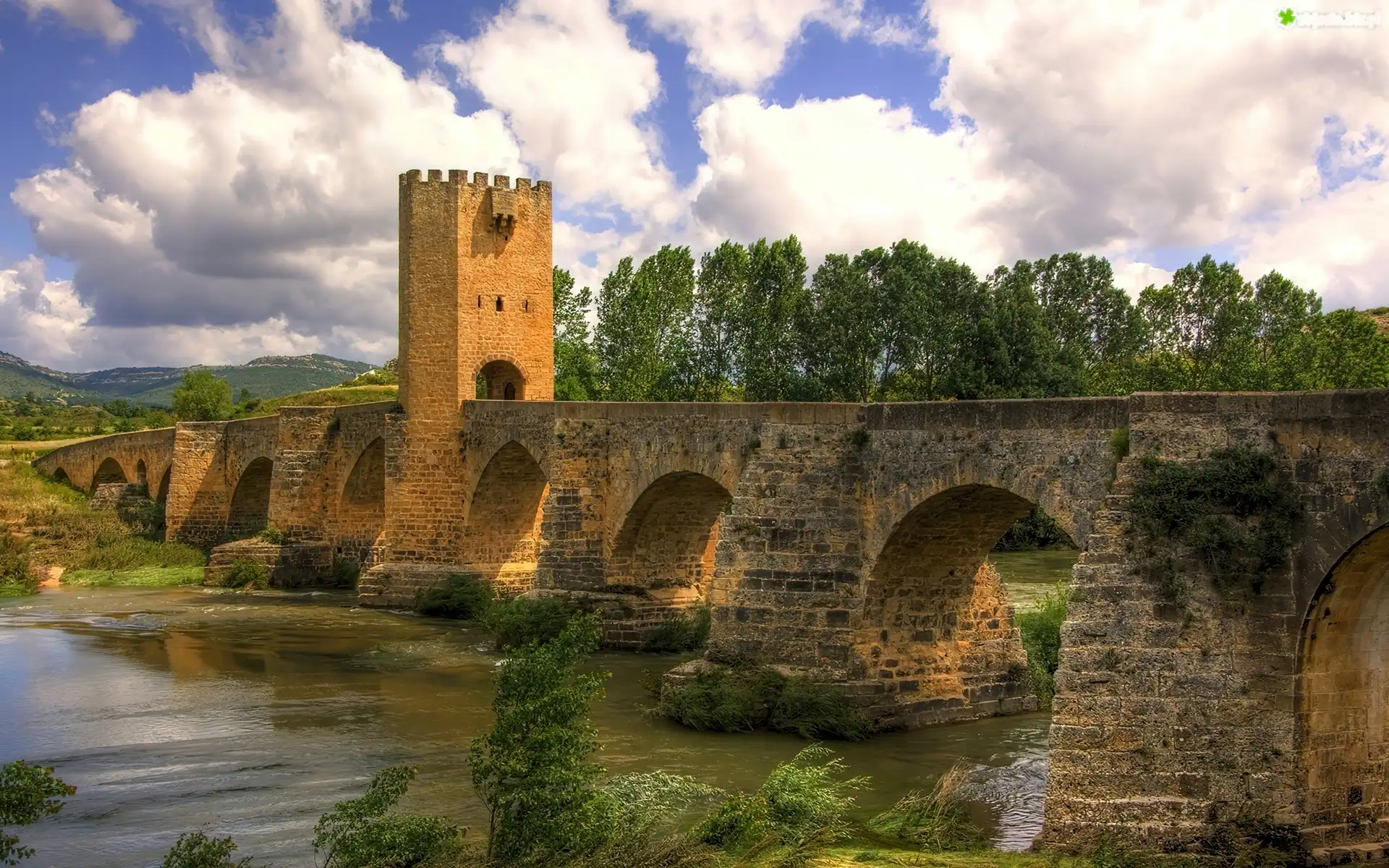 Zdjęcie Hiszpania, Most, Rzeka, Drzewa