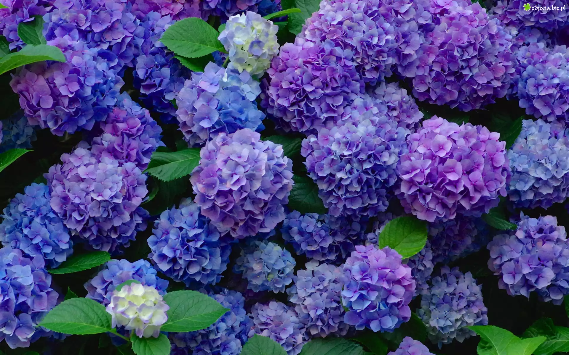 Zdjęcie Hortensja, Fioletowe, Kwiaty, Liście