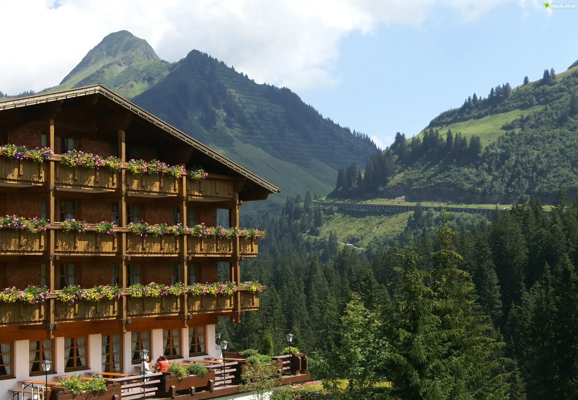 Zdjęcie, Hotel, Damuls, Madlener, Austria, Góry, Drzewa