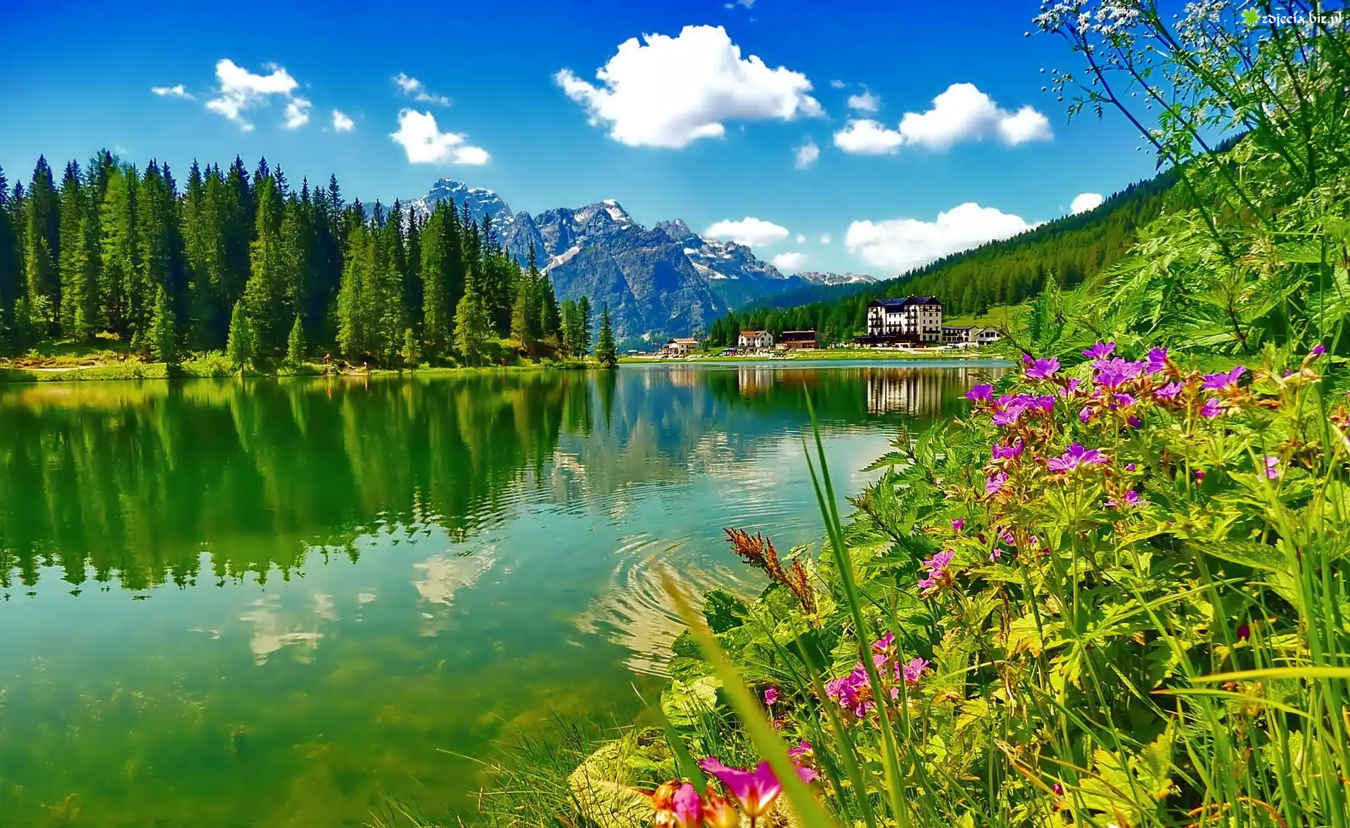 Zdjęcie Hotel, Góry, Lasy, Jezioro, Kwiatki