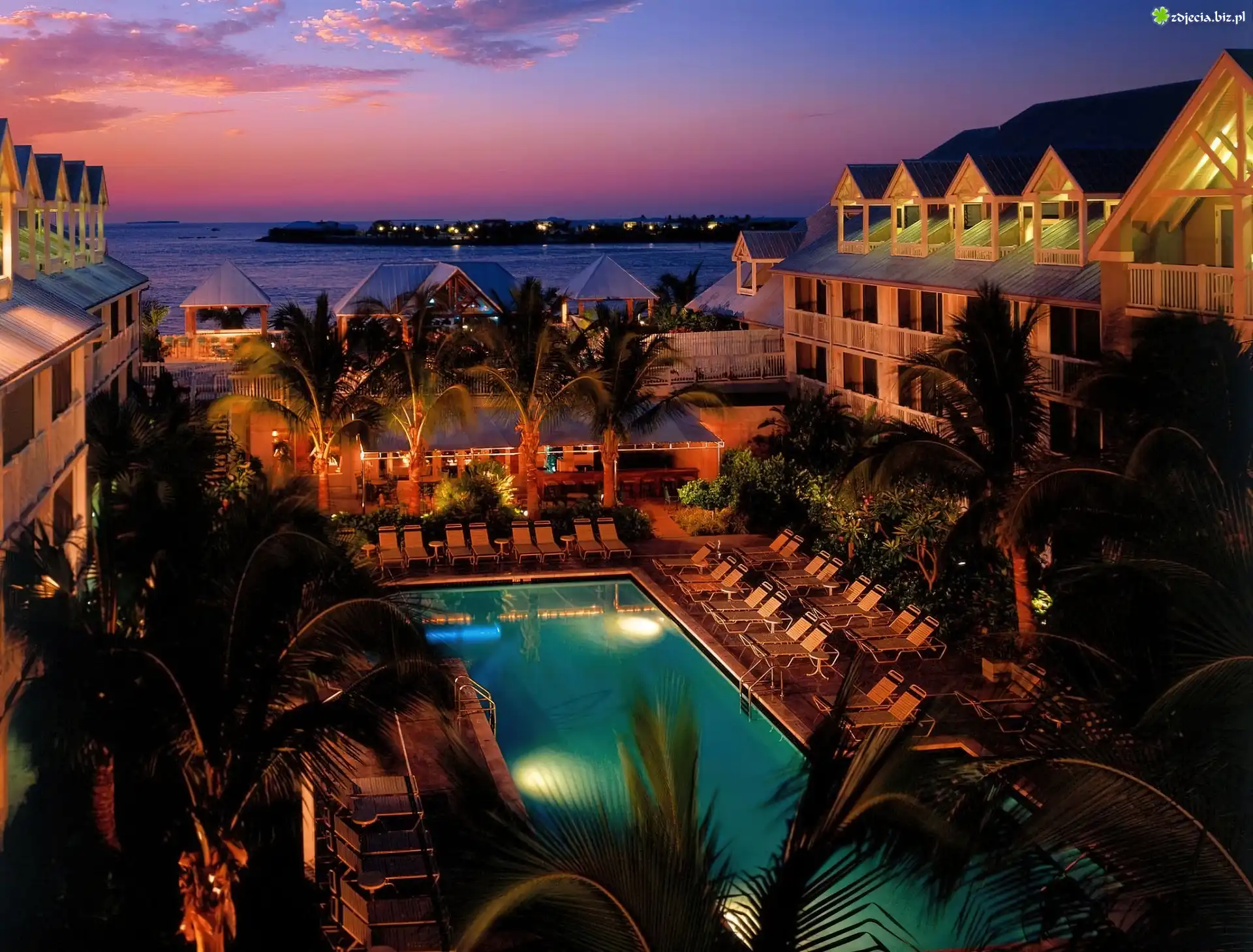Zdjęcie, Hotel, Basen, Morze, Palmy, Nocą