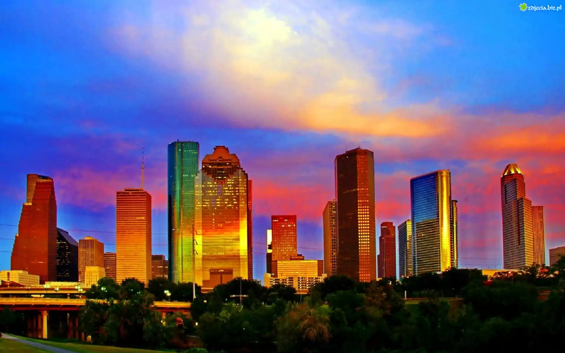 Zdjęcie Houston, Drapacze, Chmur, Park, Zachód