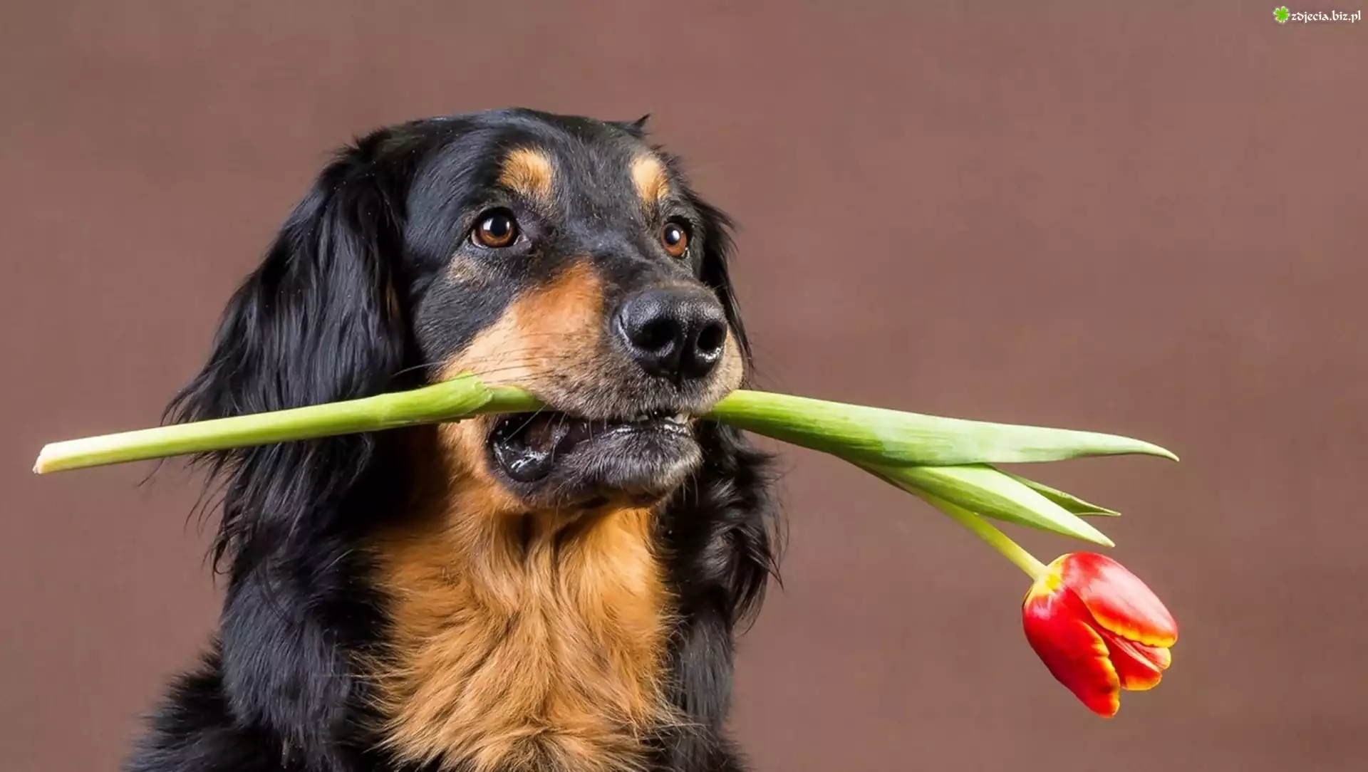 czarny, Hovawart Pies, Hovawart, Tulipan Pies, Hovawart, Kwiat Hovawart, las, droga pysk, Hovawarta czarny, Hovawart, żółte, kwiatki duży, Hovawart