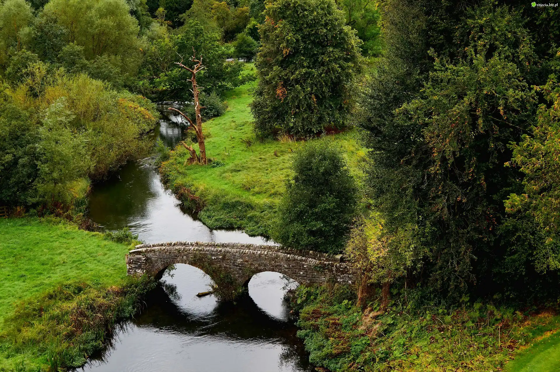 Zdjęcie Anglia, Hrabstwo Derbyshire, Bakewell, Park, Mosty, Rzeka