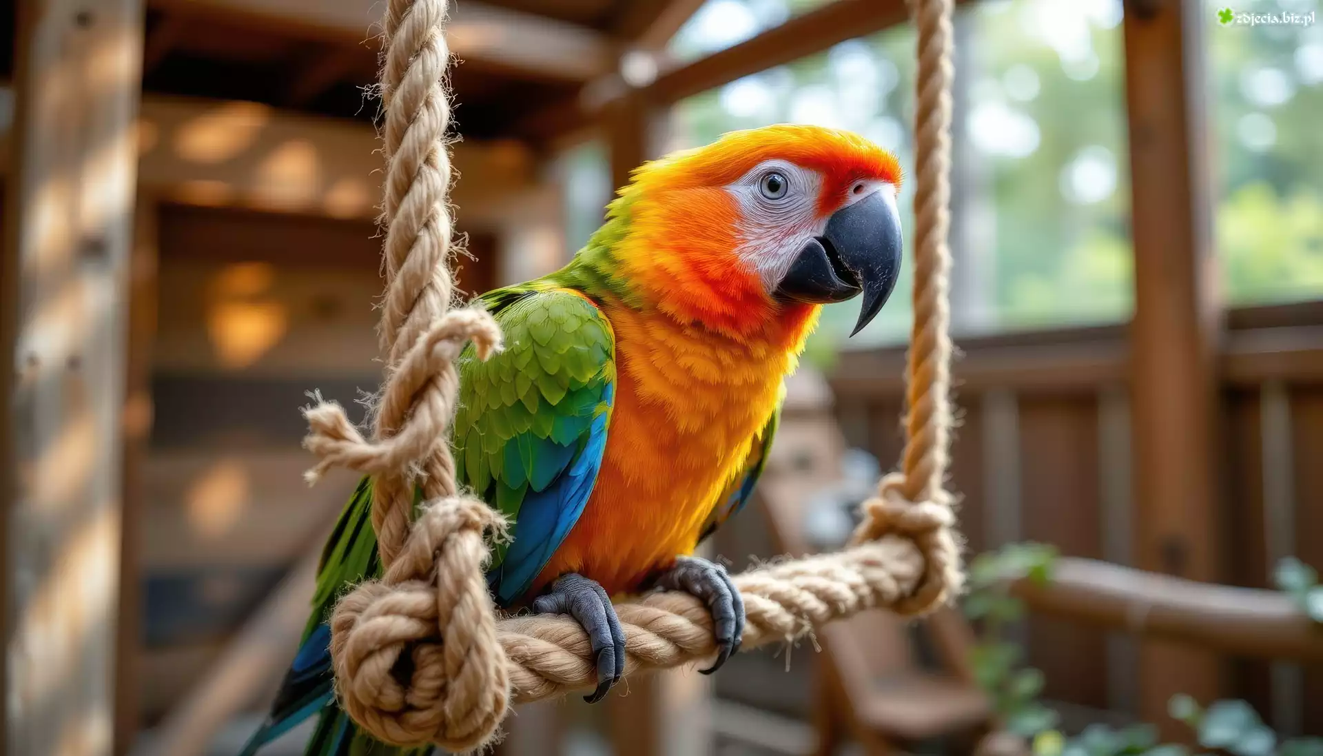 Zdjęcie Papuga, Ara, Lina, Huśtawka, Grafika AI