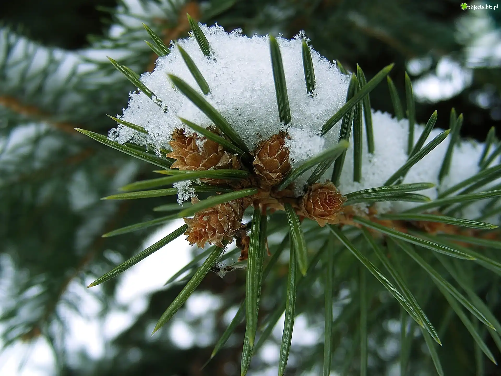 Zdjęcie Igliwie, Ośnieżona, Gałązka, Świerku