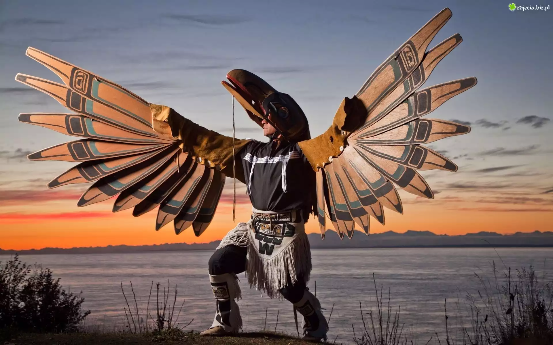 Zdjęcie Indianin, Kostium, Taniec, Zachód, Słońca