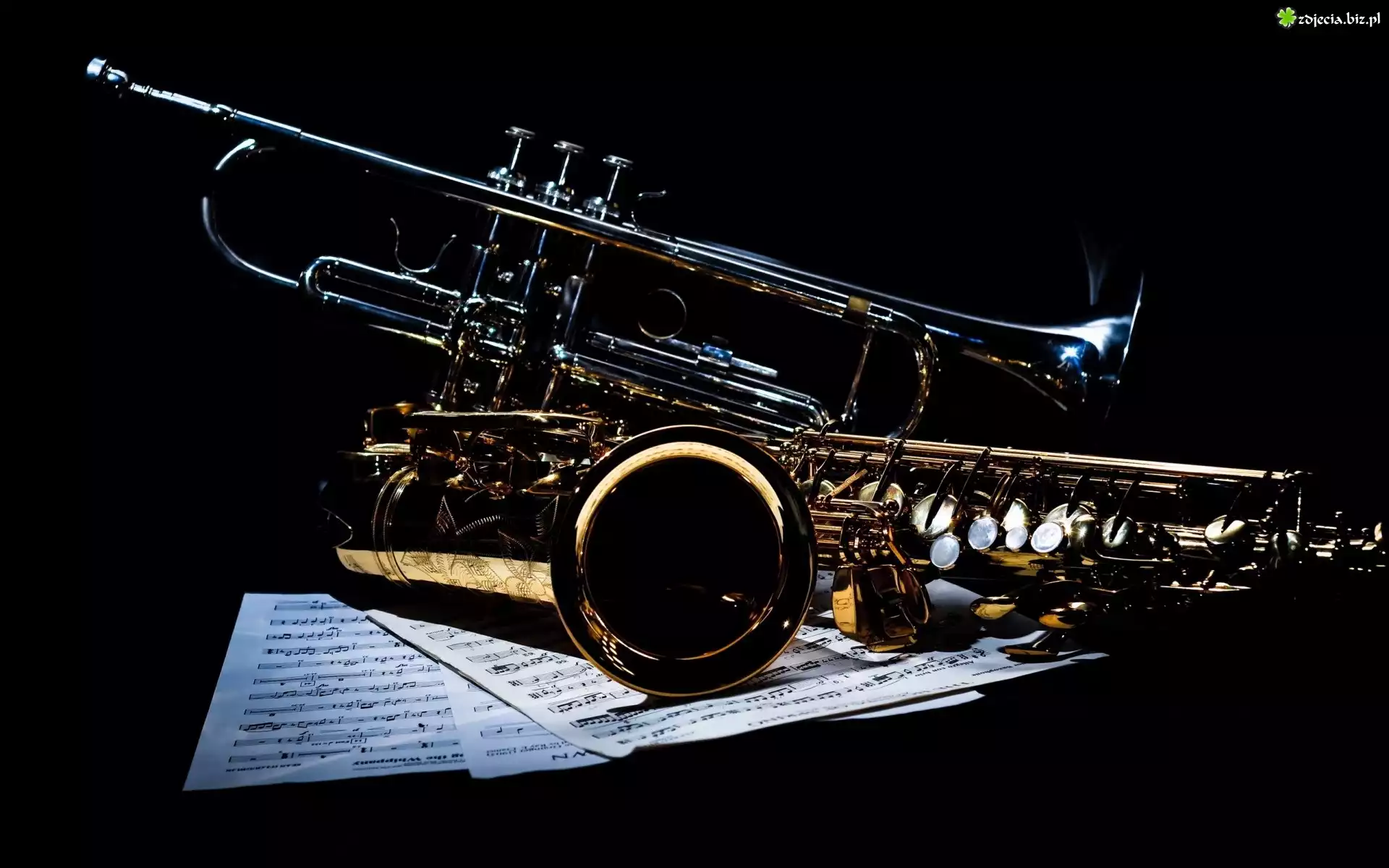 Zdjęcie Instrumenty, Saksofon, Trąbka, Nuty
