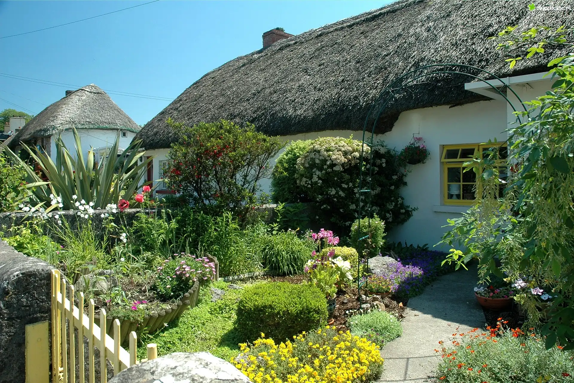 Zdjęcie, Dom, Irlandia, Kwiaty