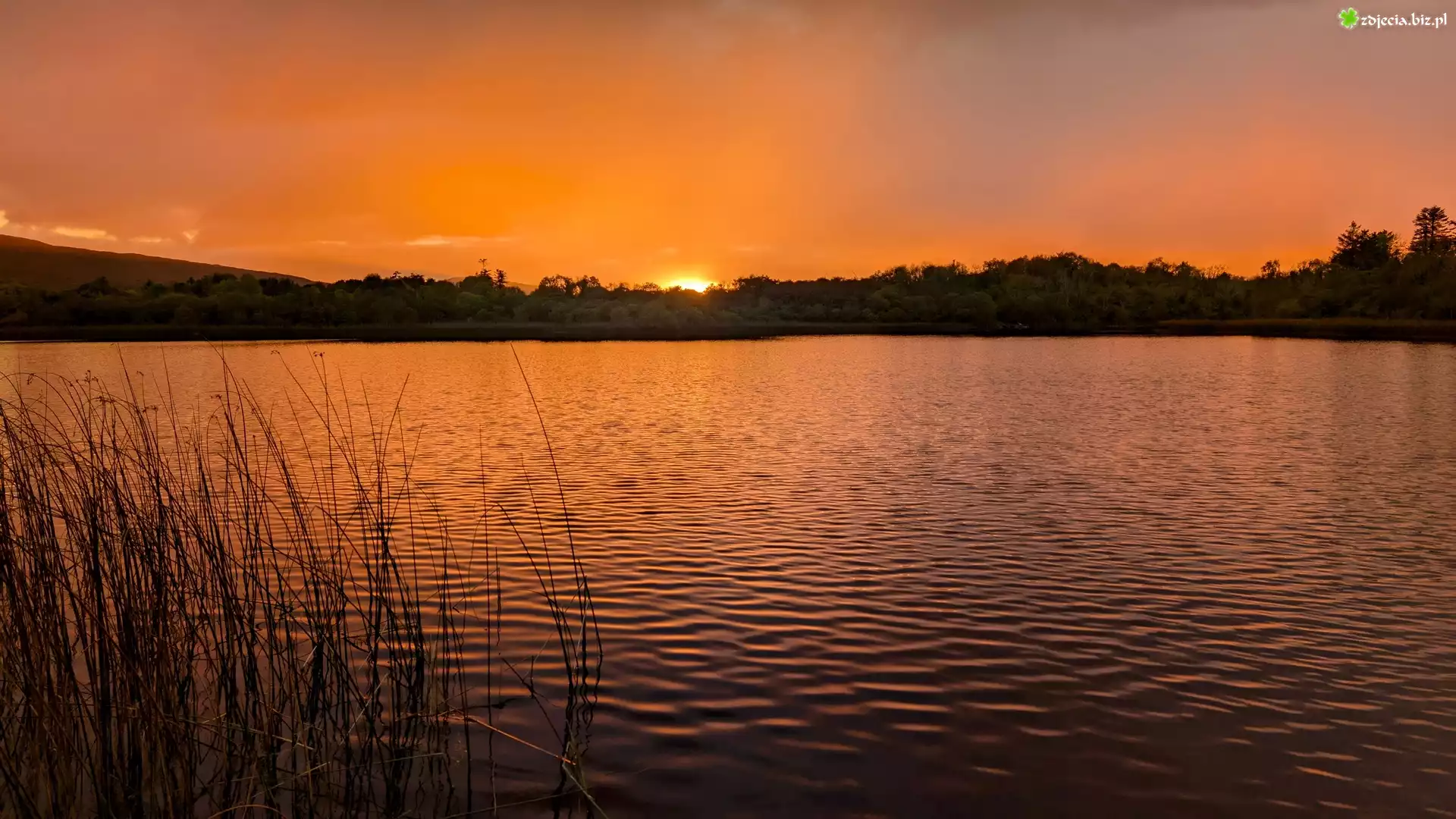 Zdjęcie Jezioro, Ross Lake, Zachód słońca, Rosscahill, Galway, Irlandia