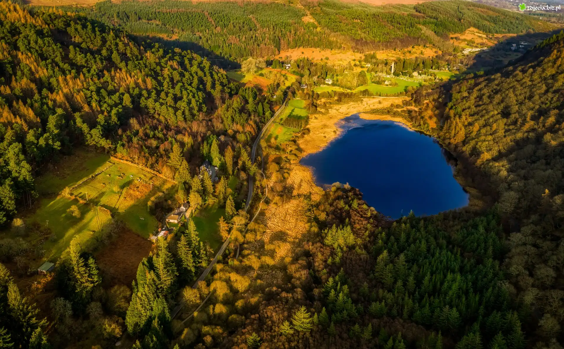 Zdjęcie Jezioro Lower Lake, Wzgórza, Las, Park Narodowy Gór Wicklow, Irlandia