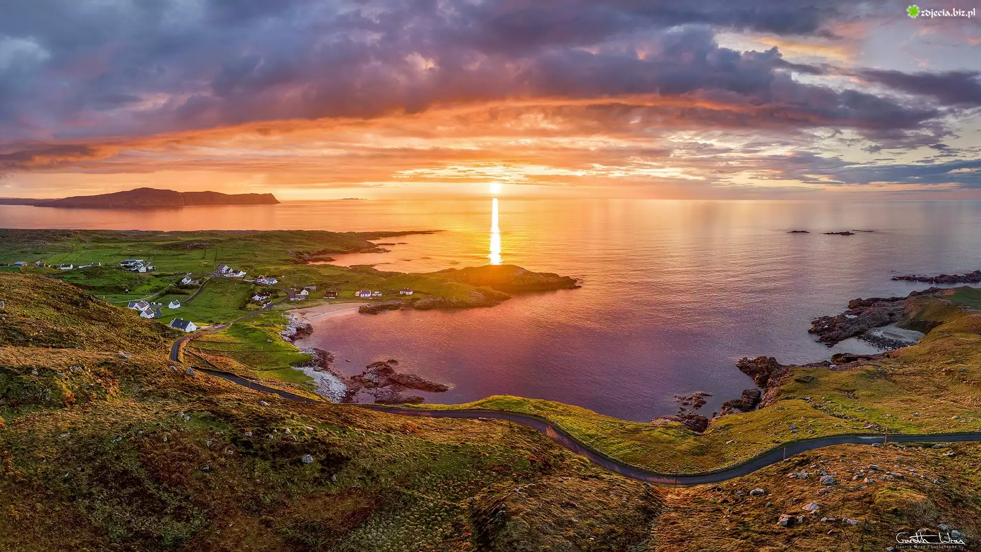 Zdjęcie Irlandia, Hrabstwo Donegal, Morze, Półwysep Rosguill, Zatoka, Zachód słońca